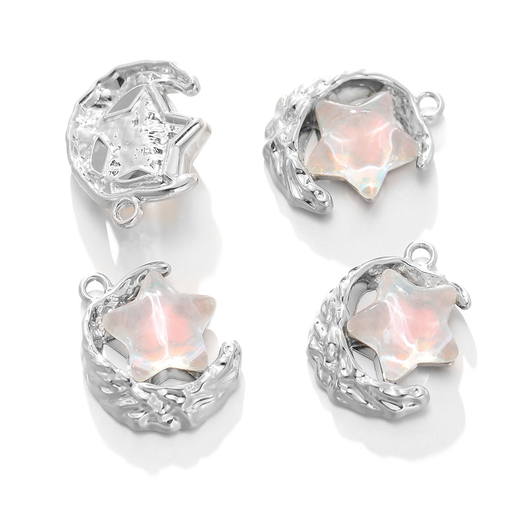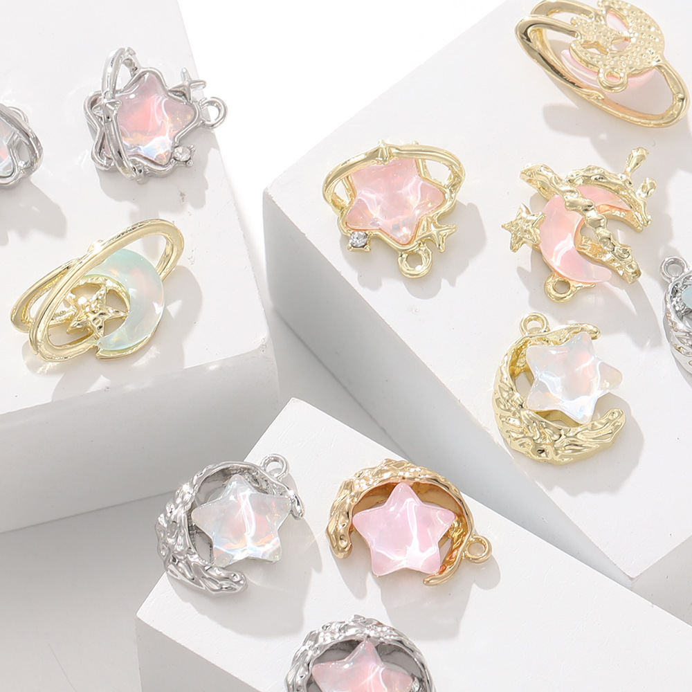 새로운 다섯개 별 합금 포인트 드릴 문 다이아몬드 펜던트 UV 도금 펜던트 diy 팔찌 목걸이 매달려 도금 액세서리스토어 가기