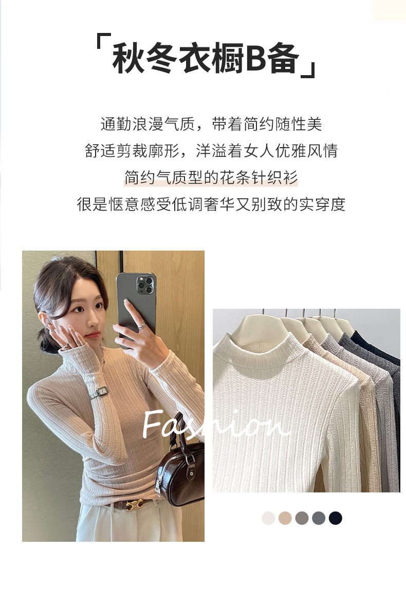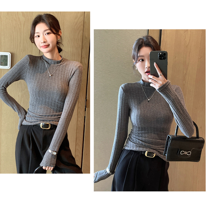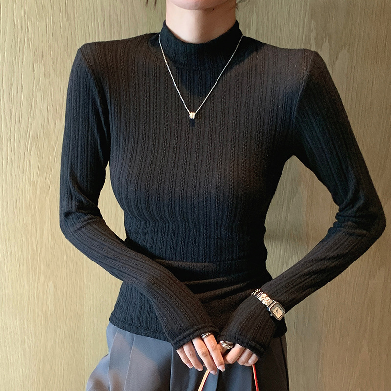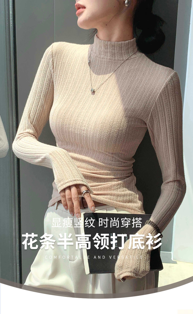 H558 새로운 슬림 핏 얇은 니트웨어 탑 내부 스웨터 외장의베이스 레이어 셔츠 가을 및 겨울 하프 하이 칼라 여성 의류스토어 가기