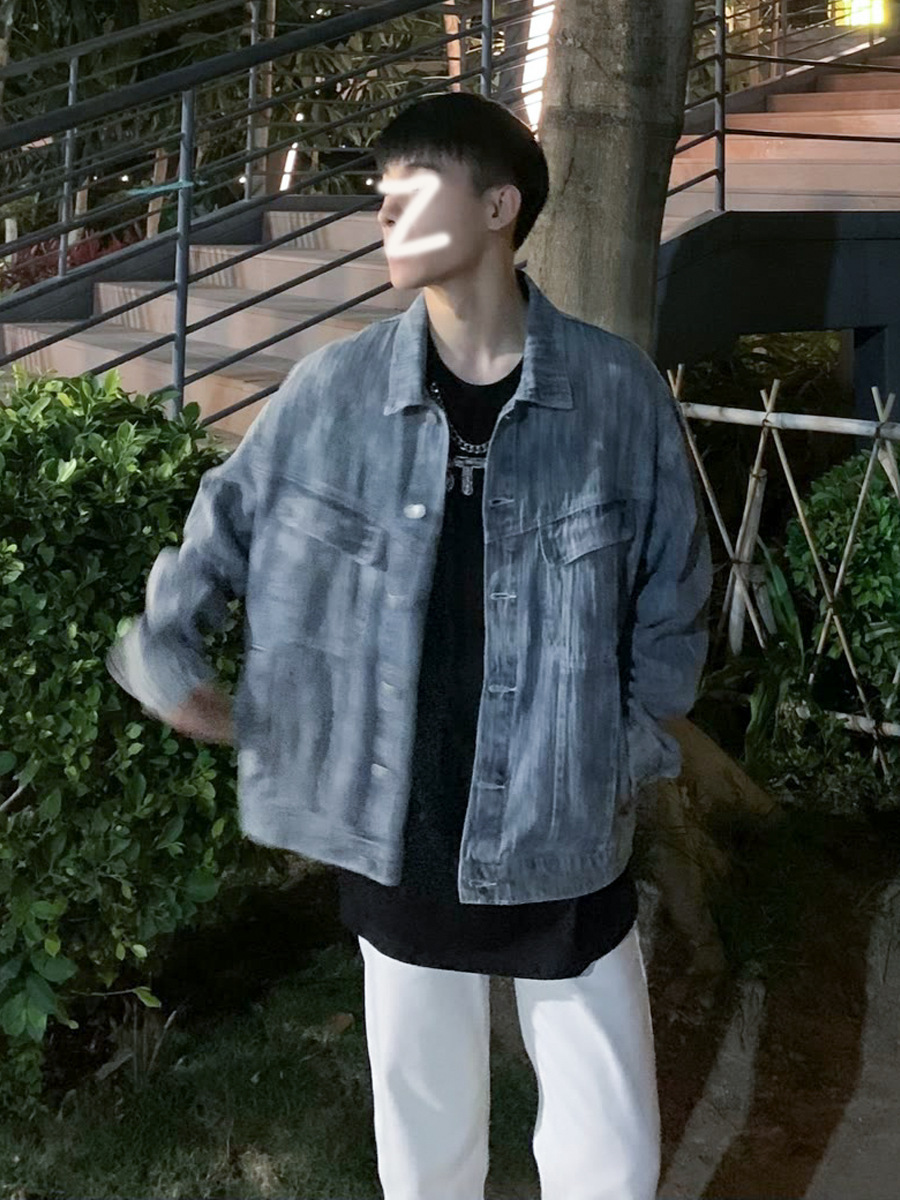 아메리칸 스타일 캐주얼 지퍼 디자인 센스 데님 재킷 남성 트렌디 브랜드 봄과 가을 홍콩 스타일 트렌디 브랜드 올매치 톱 한국 스타일 재킷스토어 가기