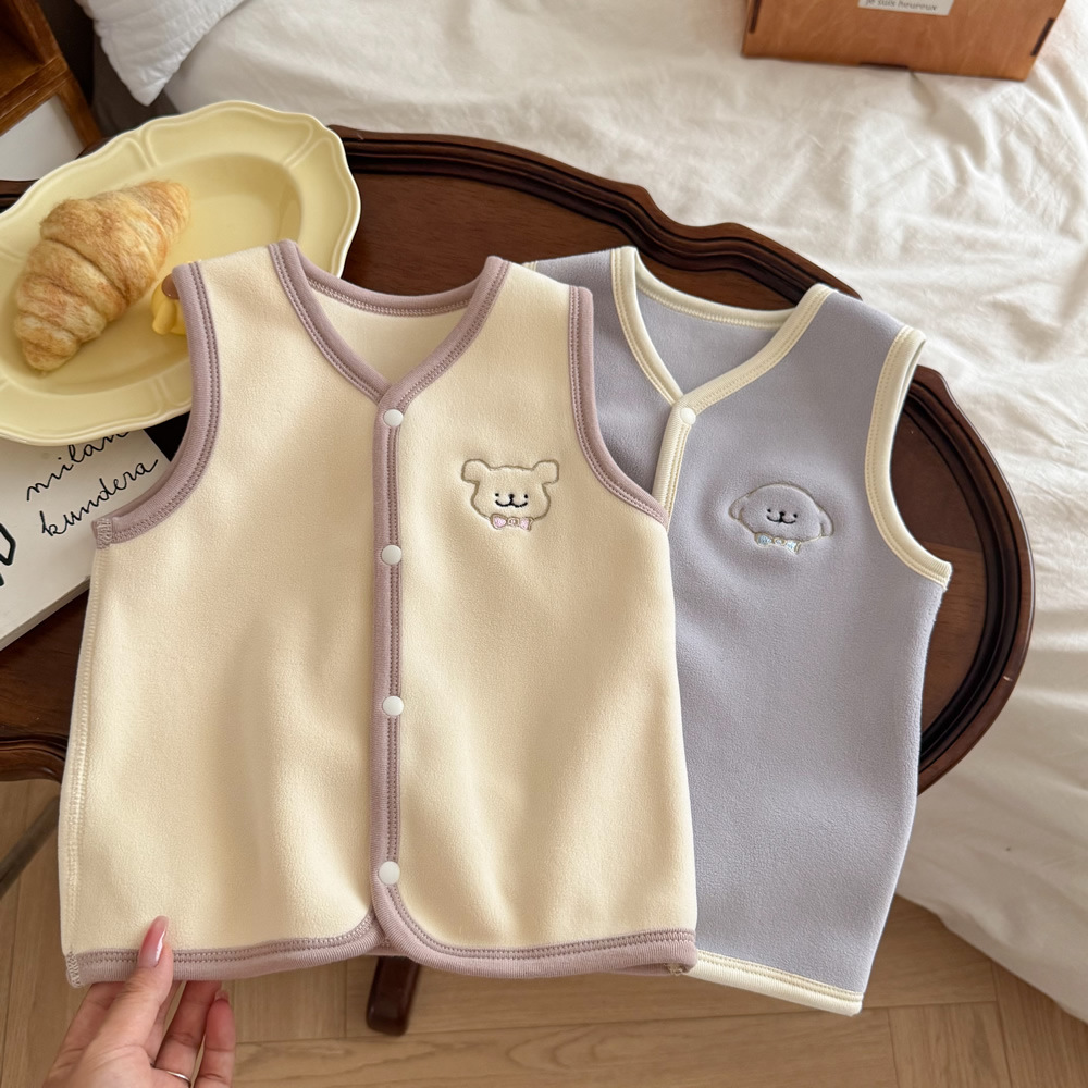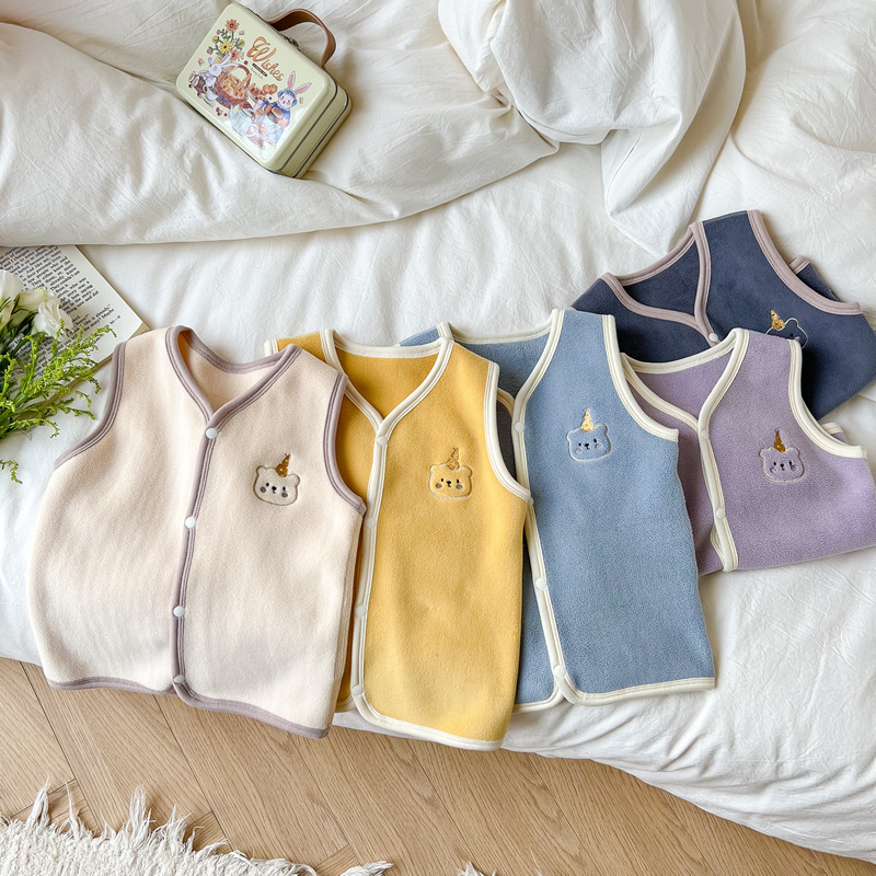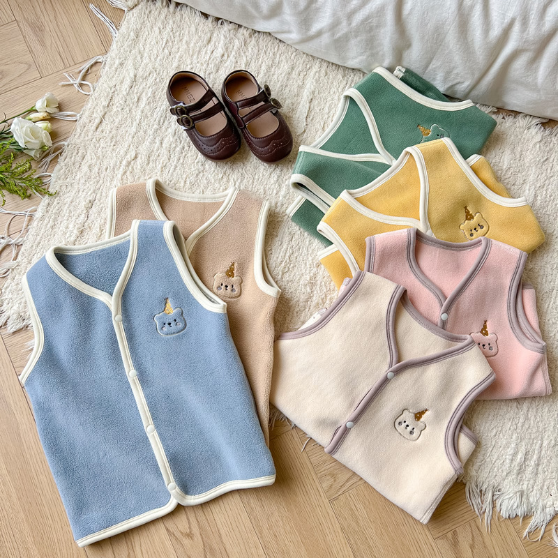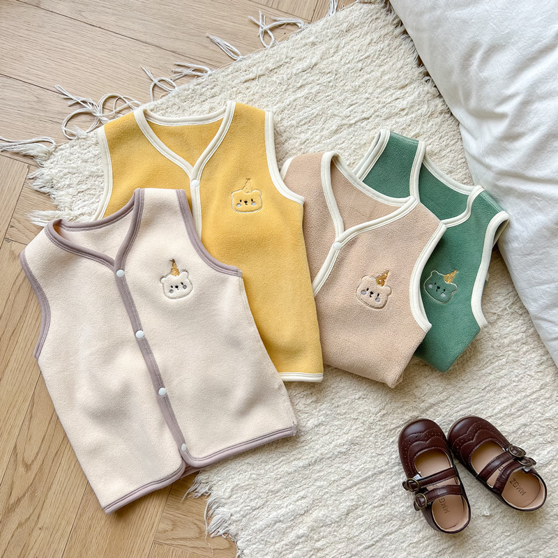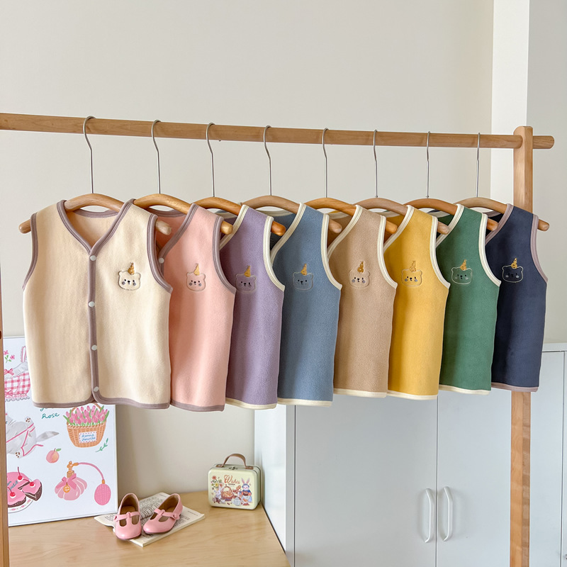 가을과 겨울 어린이 카디건 조끼 따뜻한 아기 올리 벨벳 뼈없는 조끼 소년 소녀 양고기 벨벳 양복 조끼