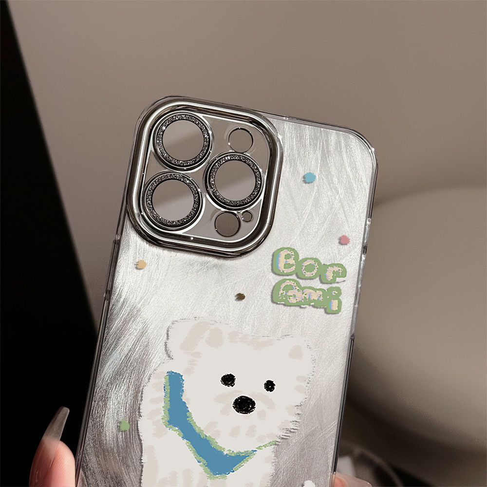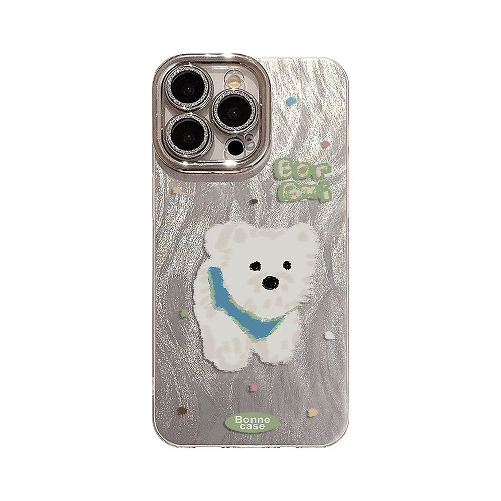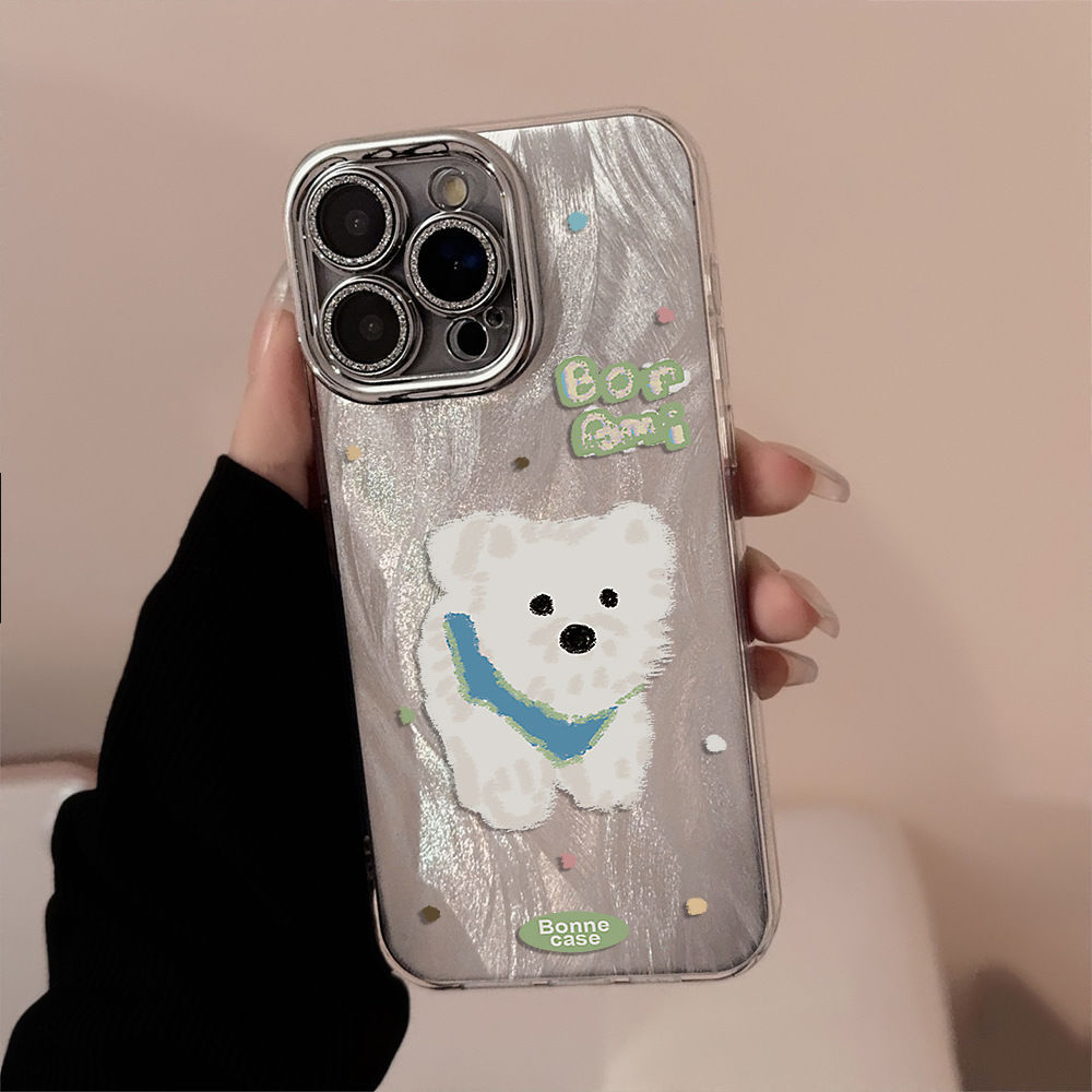 깃털 원사 렌즈 필름 귀여운 16/15/14promax 전화 케이스 애플 15 유화 만화 강아지 iPhone13