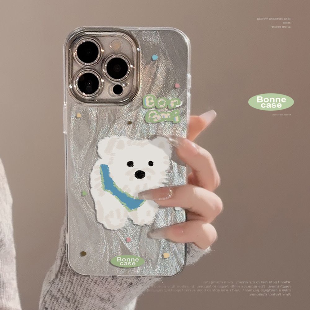 깃털 원사 렌즈 필름 귀여운 16/15/14promax 전화 케이스 애플 15 유화 만화 강아지 iPhone13스토어 가기