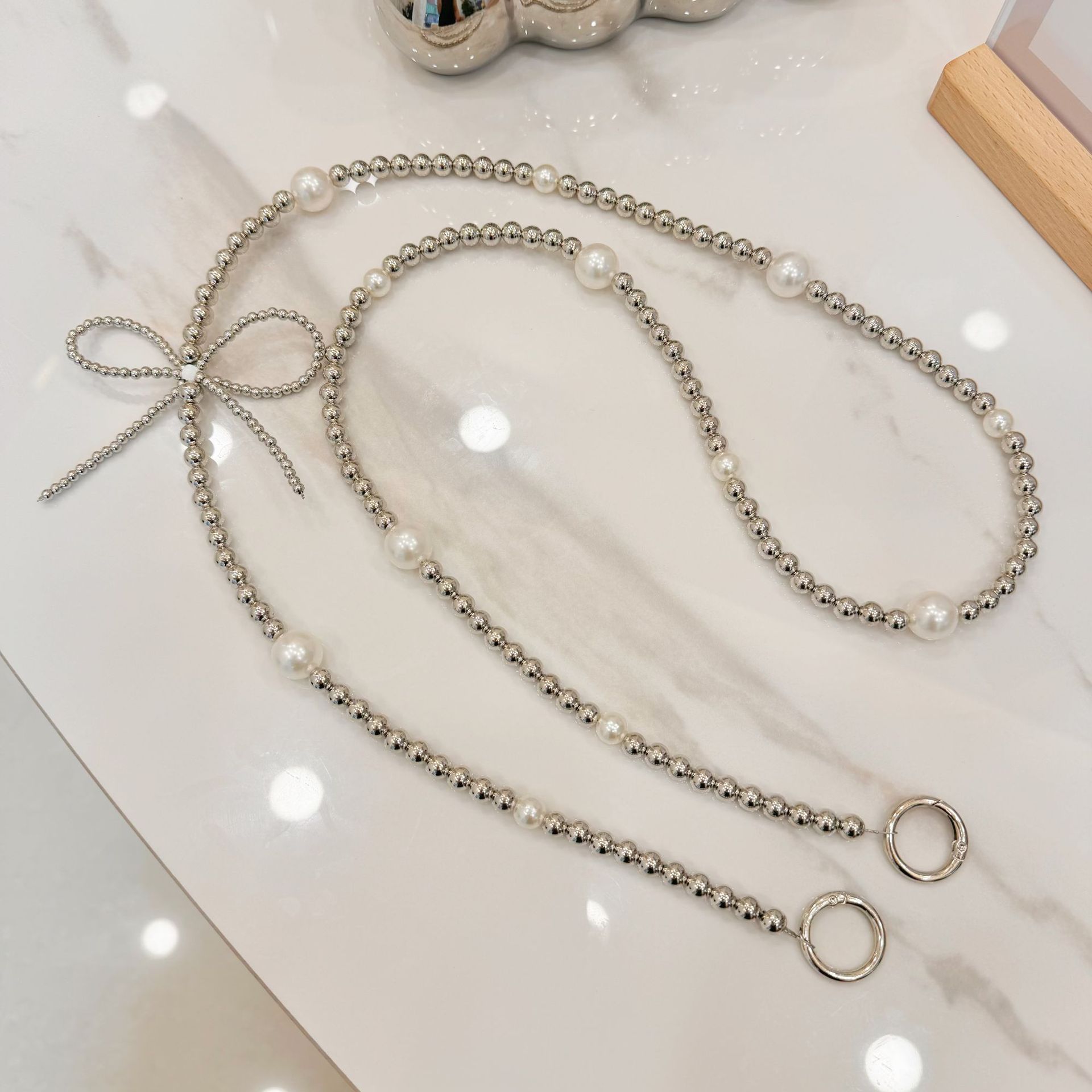 • 작은 진주 휴대폰 백 클립 비드 체인