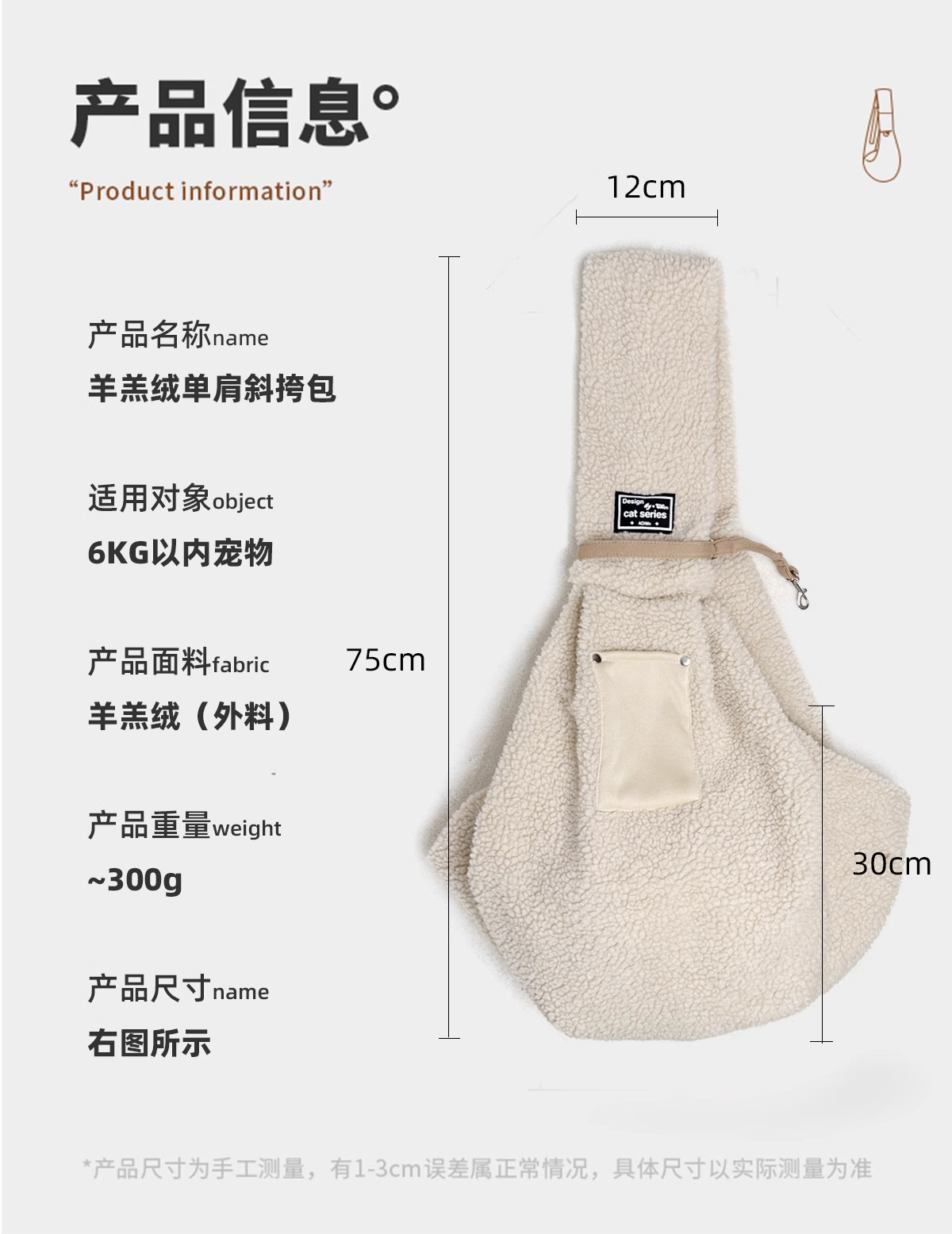 애완 동물 나가는 가방 고양이 가방 나가는 휴대용 가슴 스트랩 겨울 따뜻한 양고기 벨벳 크로스 바디 가방 작은 개 가방