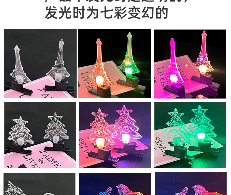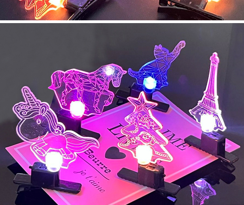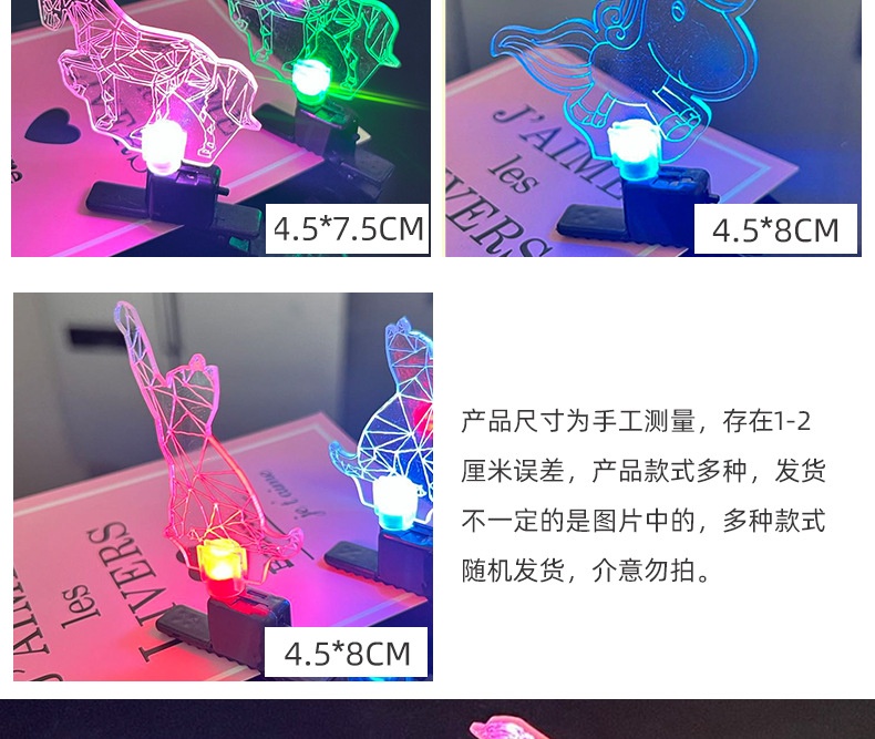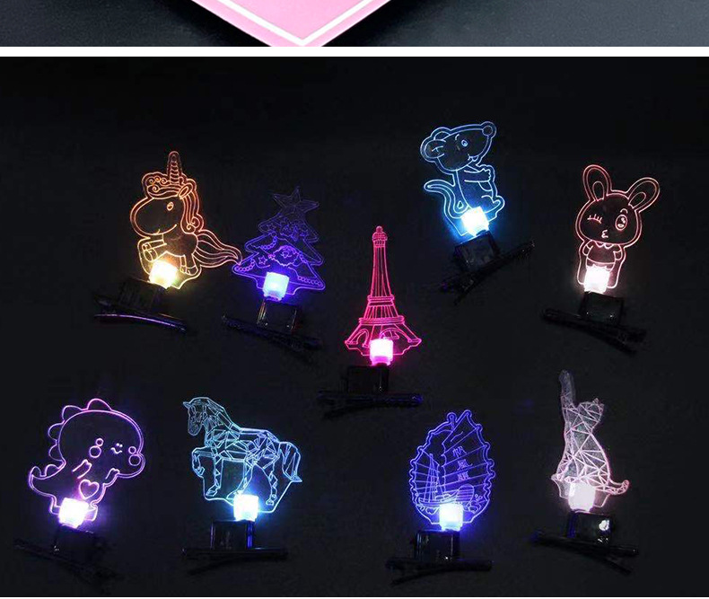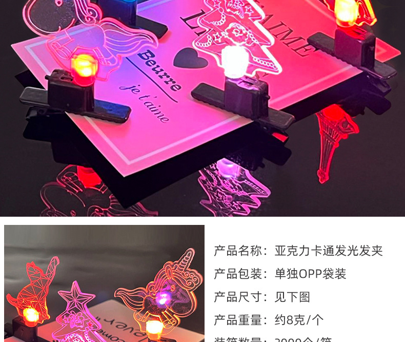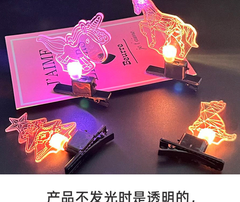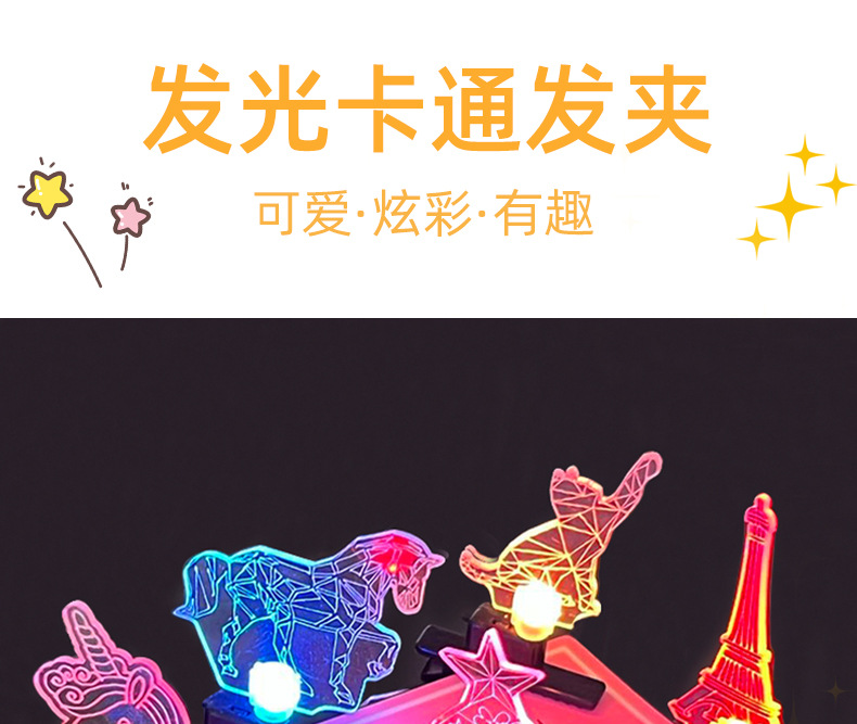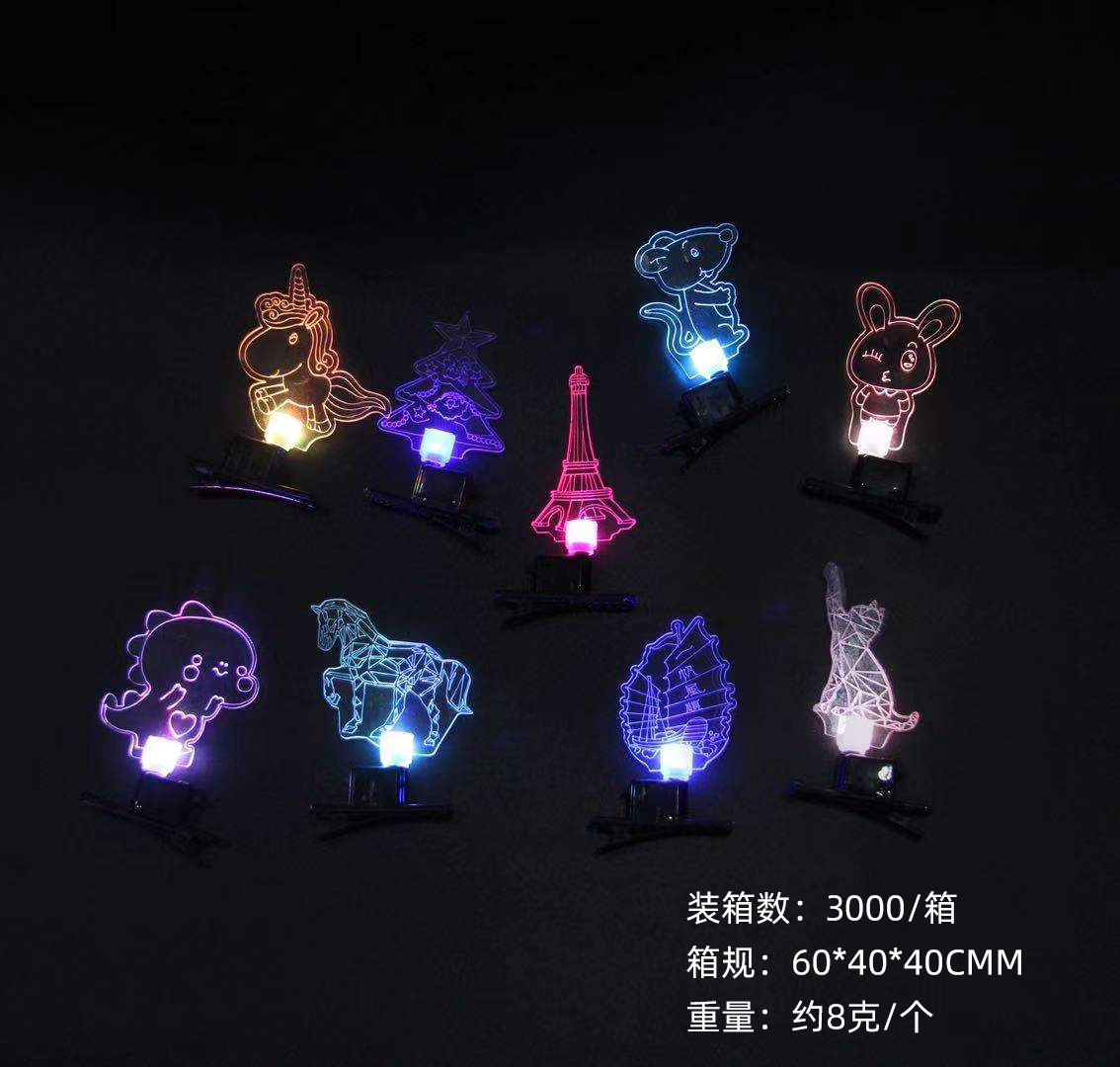 새로운 사이버 축하 LED 빛나는 만화 머리핀 만화 부드러운 접착제 아크릴 플래시 머리핀 뜨거운 판매 스윕 코드 장난감스토어 가기