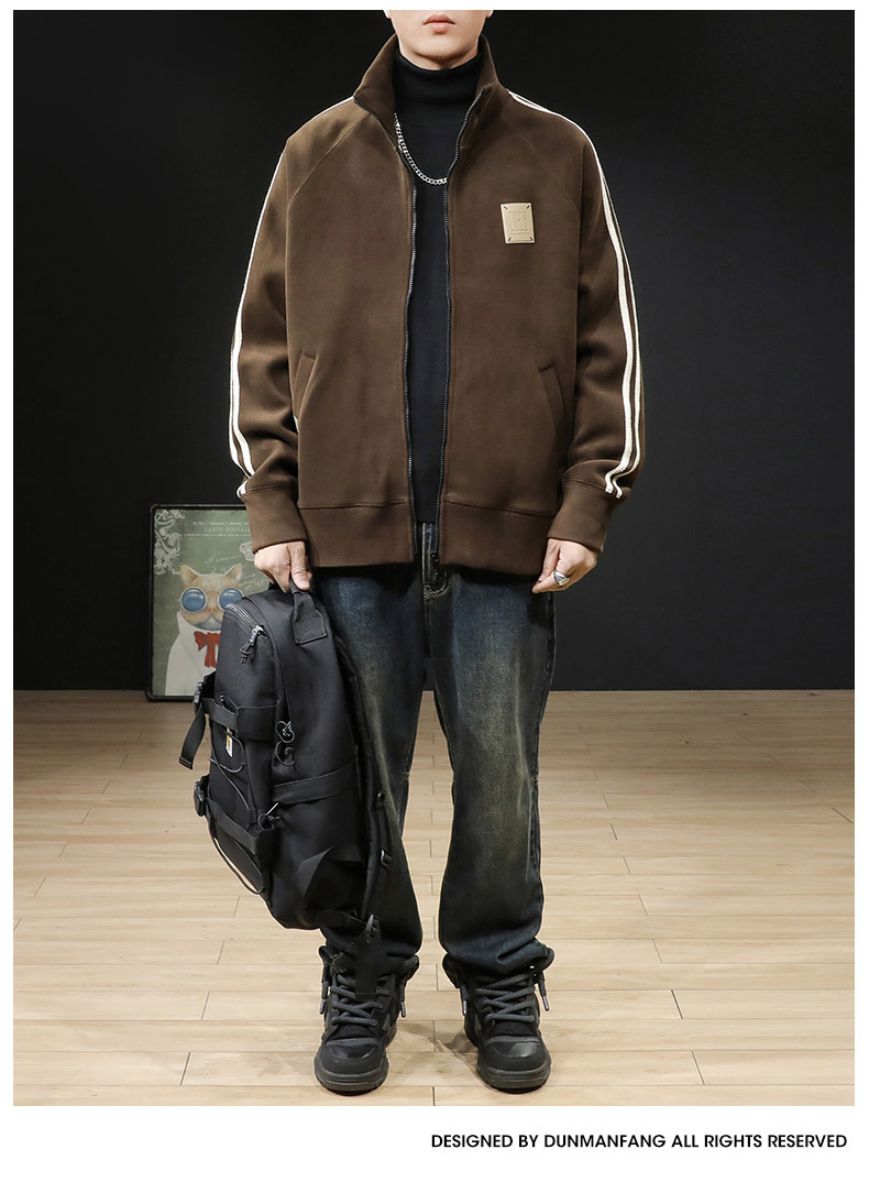 봄가을 205 신상 스탠드 칼라 지퍼 가디건 스웨트셔츠 남성 트렌디 브랜드 빅사이즈 봄가을 남성 고급 스포츠 재킷