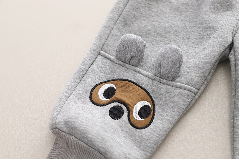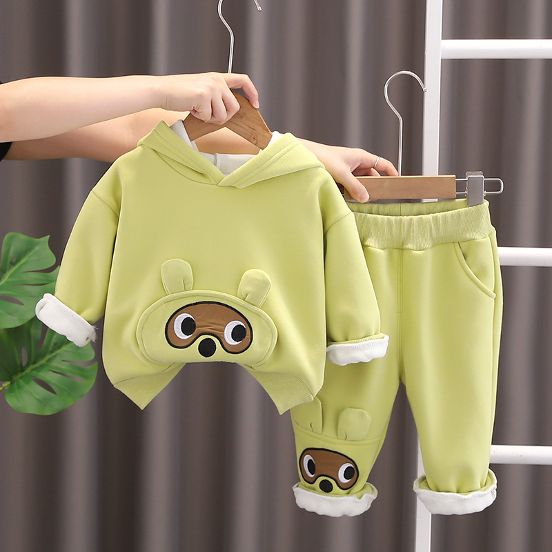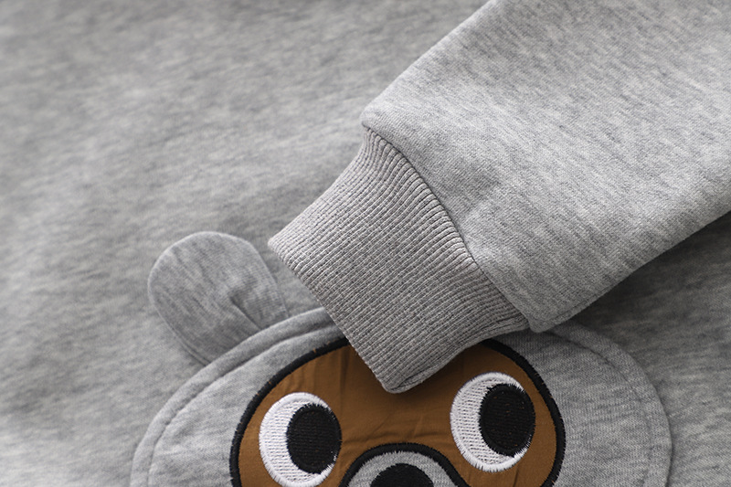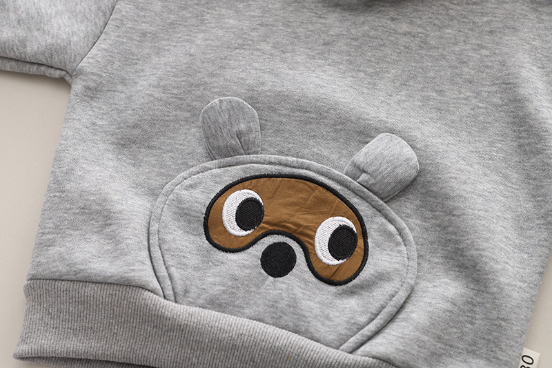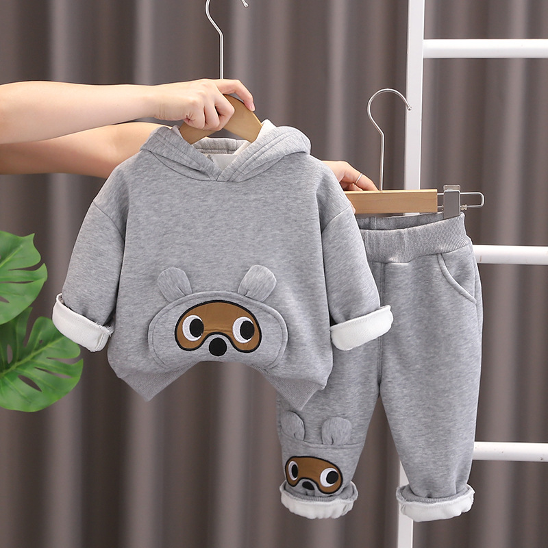 2024 새로운 가을 아동복 곰 후드 어린이 기모 긴 소매 투피스 어린이 가을 의류 아동용 세트 세트