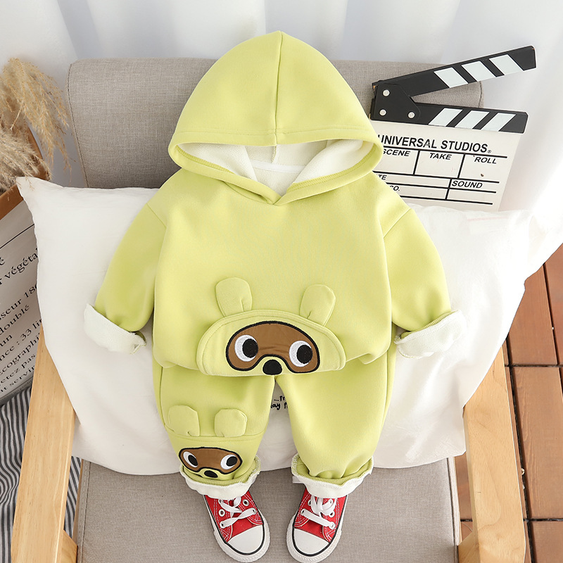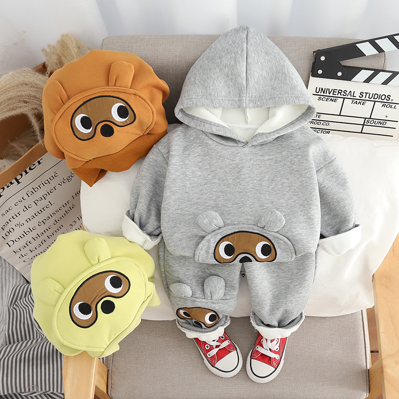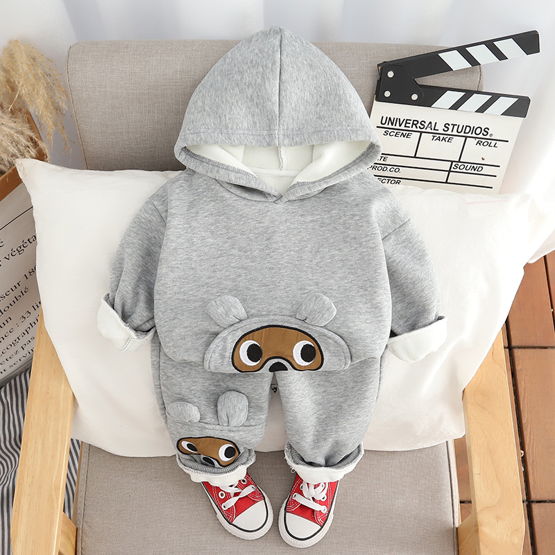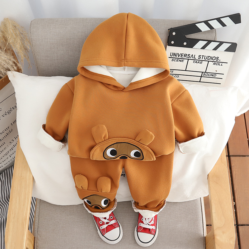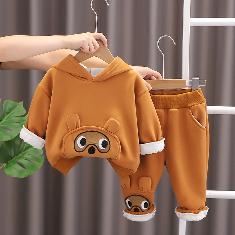 2024 새로운 가을 아동복 곰 후드 어린이 기모 긴 소매 투피스 어린이 가을 의류 아동용 세트 세트스토어 가기