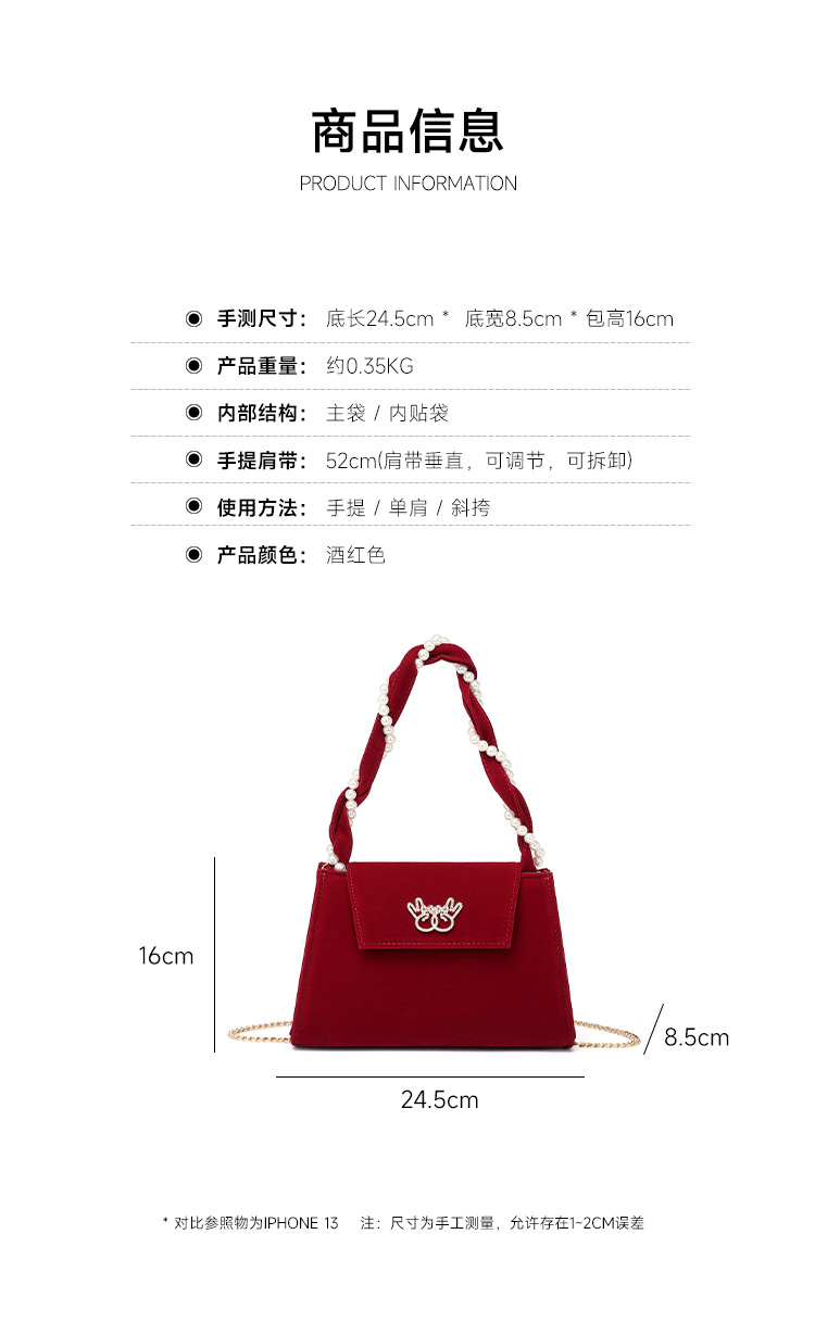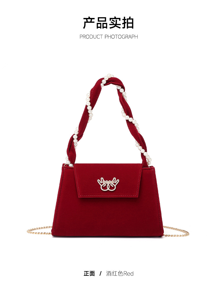 레드 가방 신부 가방 2024 벨벳 가방 진주 가방 웨딩 싱글 룸 메신저 가방 번호 951스토어 가기