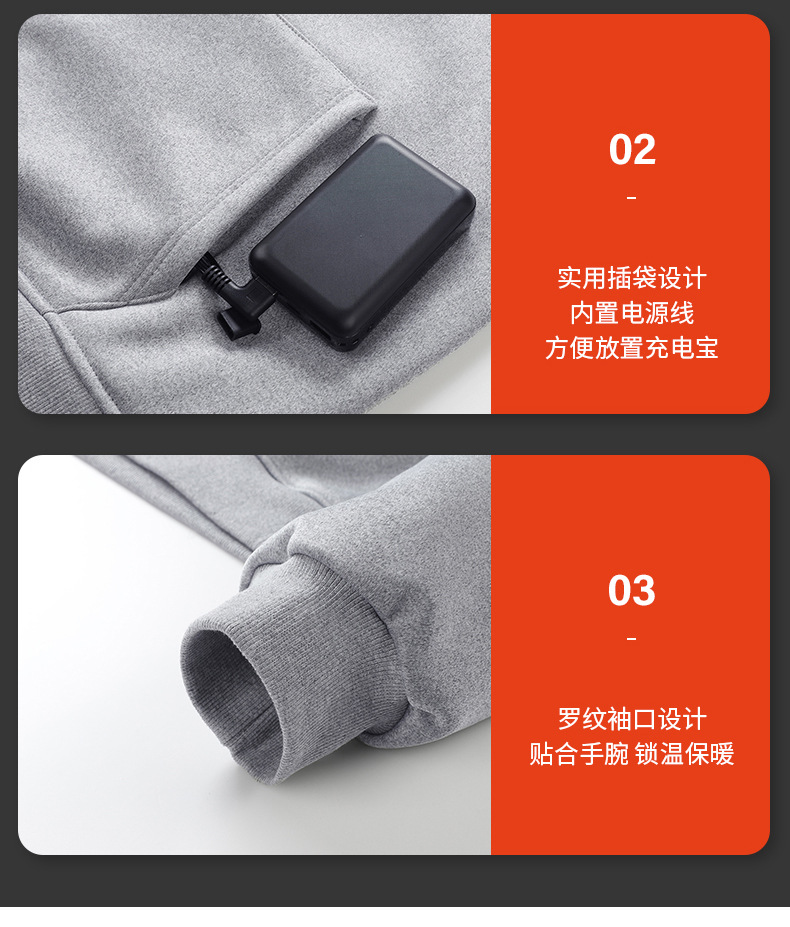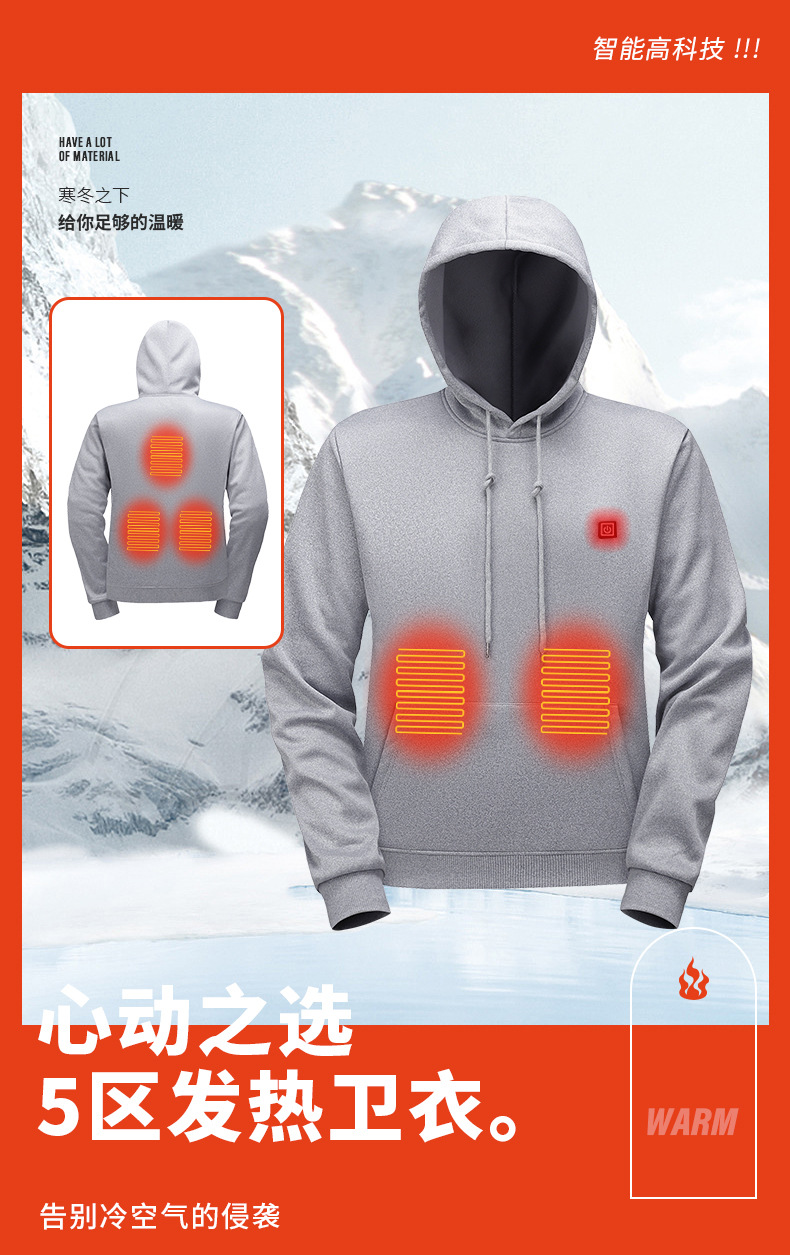 국경 간 스마트 USB 가열 충전 스웨터 남성과 여성의 후드 풀오버 가열 일정한 온도 난방 의류 기모 스웨터스토어 가기