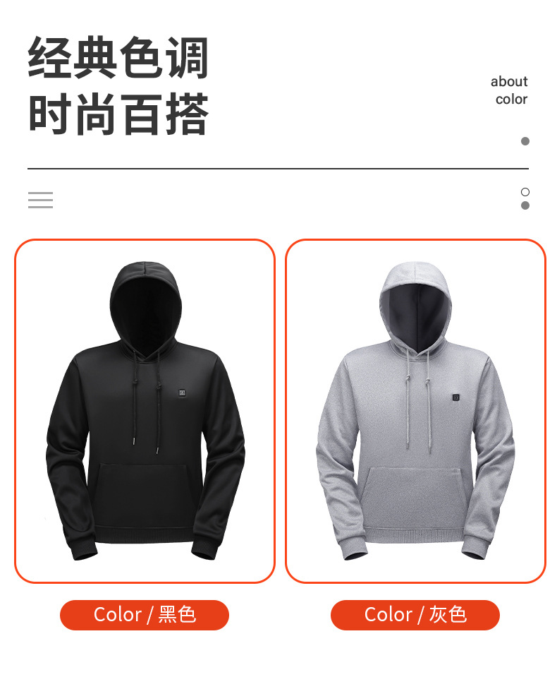 국경 간 스마트 USB 가열 충전 스웨터 남성과 여성의 후드 풀오버 가열 일정한 온도 난방 의류 기모 스웨터