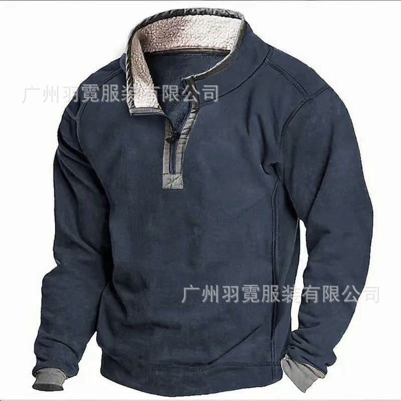 912 # 대외 무역 단색 스웨터 남성용 캐주얼 스웨터 칼라 플래켓 지퍼 기모 스웨터 가을과 겨울 재킷 남성스토어 가기