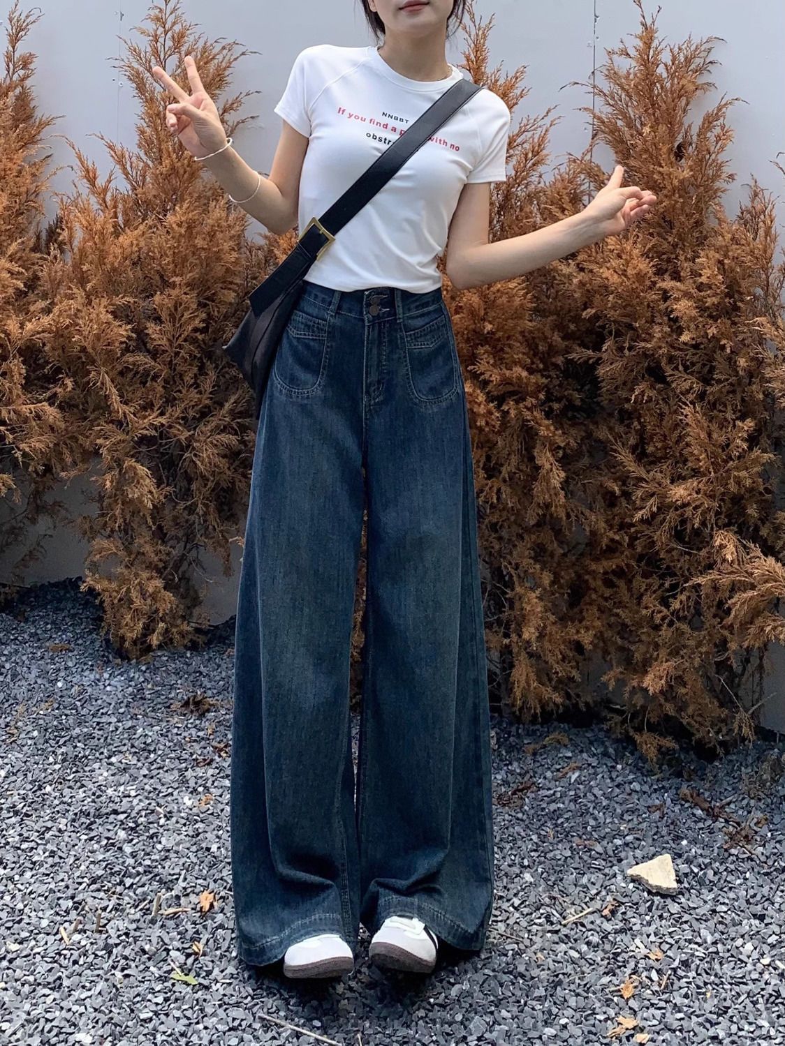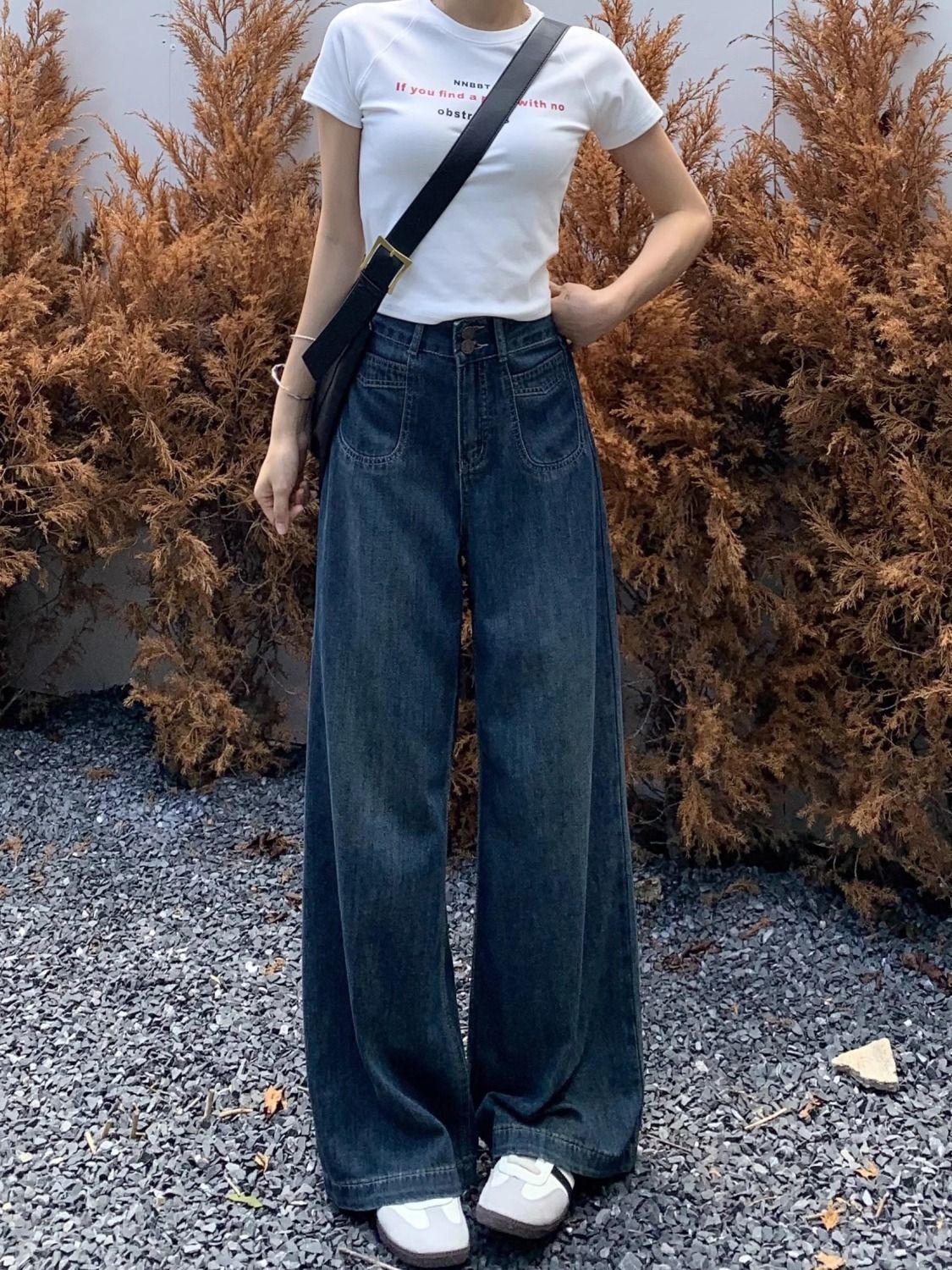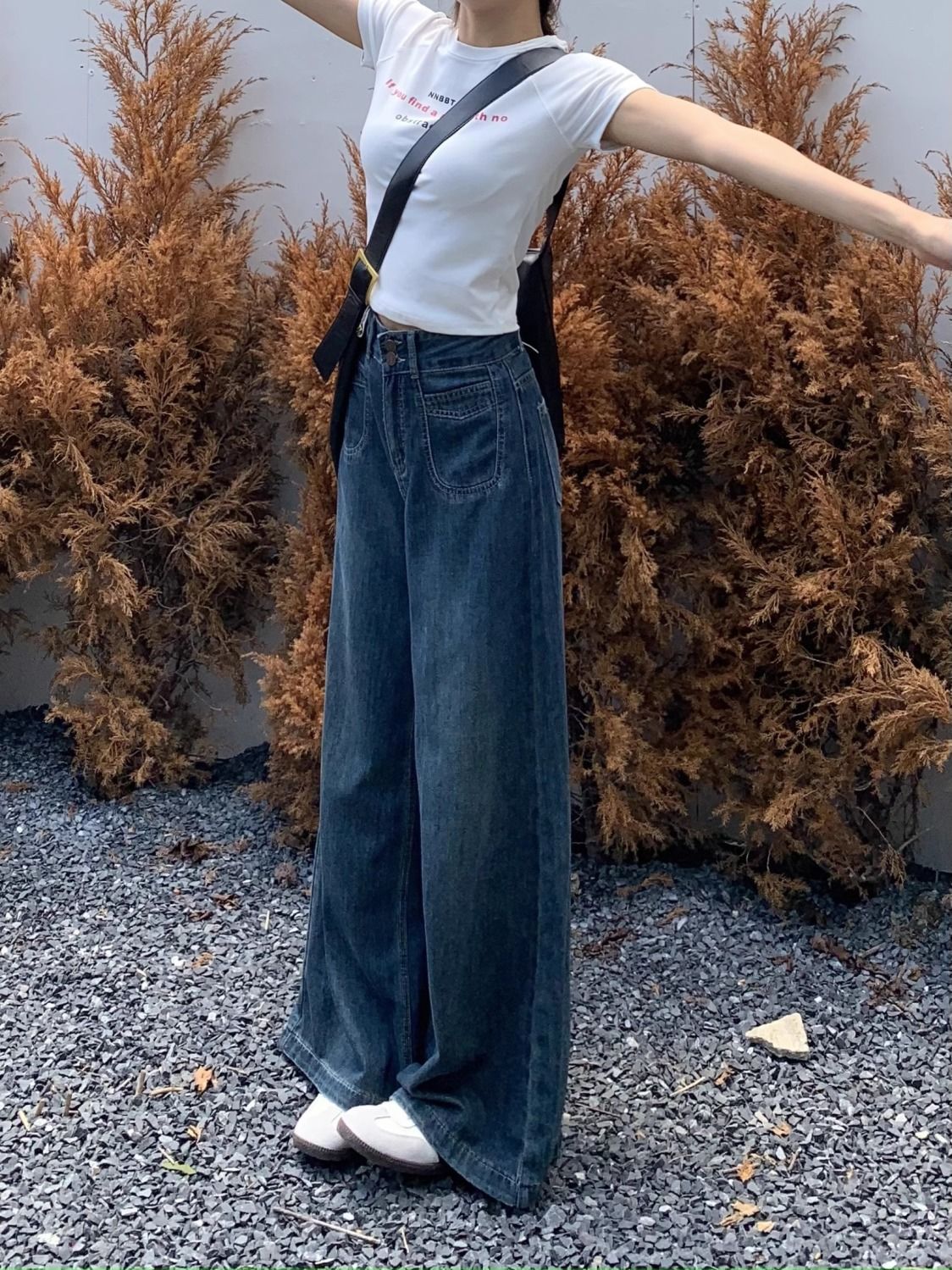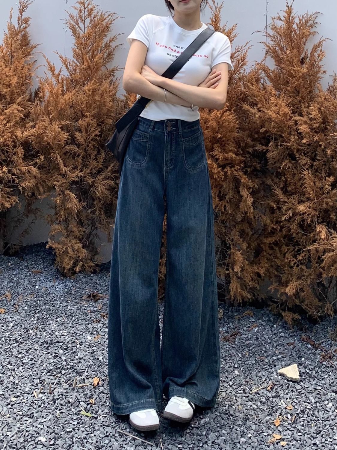 미국 레트로 스타일 루즈핏 청바지 여성용 2025년 가을 신상 드레이프 효과 바닥까지 오는 부드러운 하이웨이스트 슬림 와이드 팬츠스토어 가기