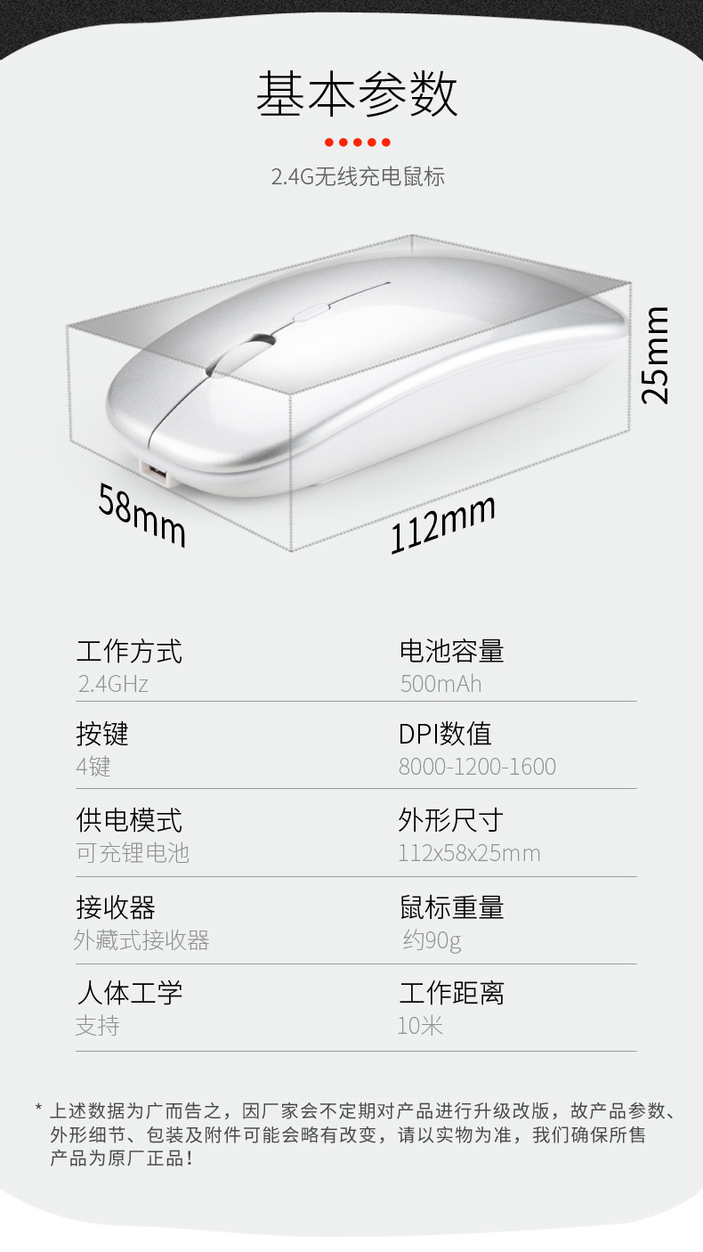 충전 발광 블루투스 듀얼 모드 2.4G 무선 마우스 데스크톱 노트북 사무실 국경 무선 마우스