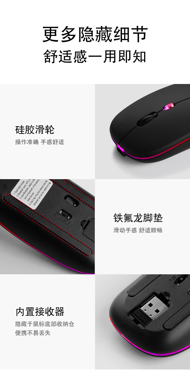 충전 발광 블루투스 듀얼 모드 2.4G 무선 마우스 데스크톱 노트북 사무실 국경 무선 마우스스토어 가기