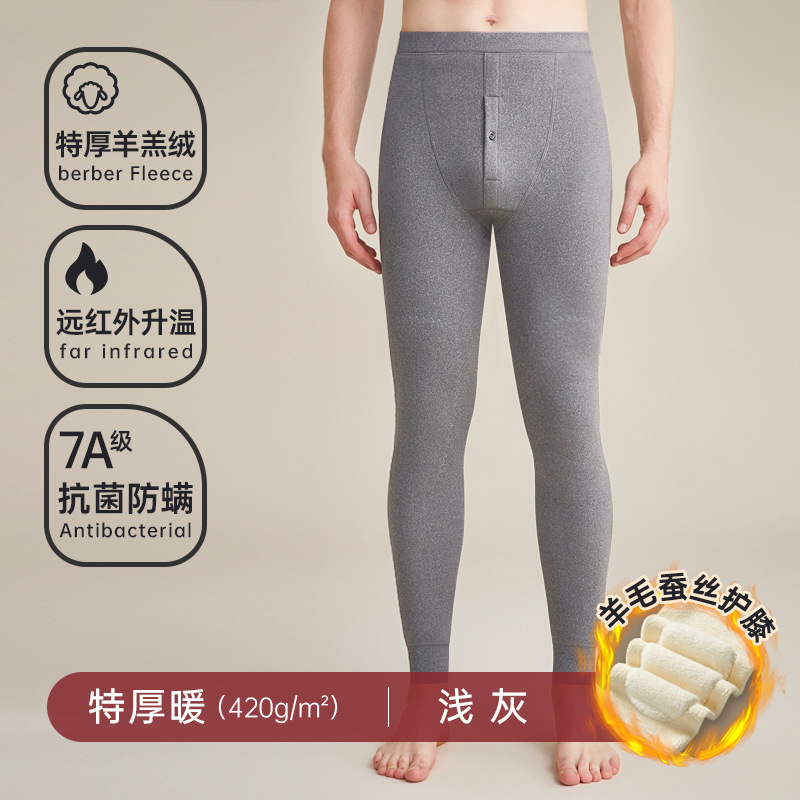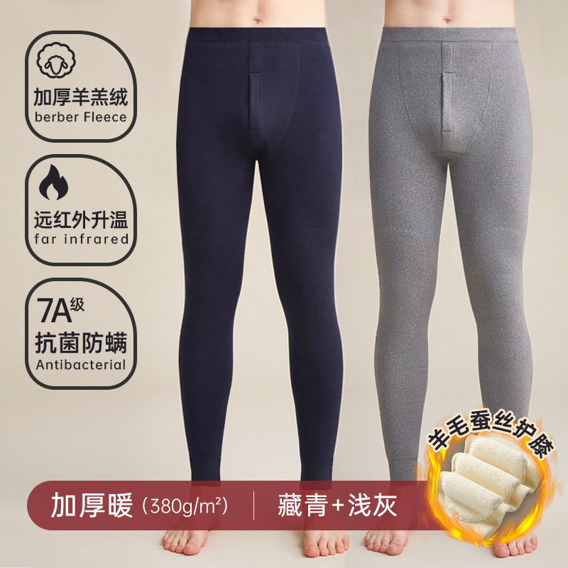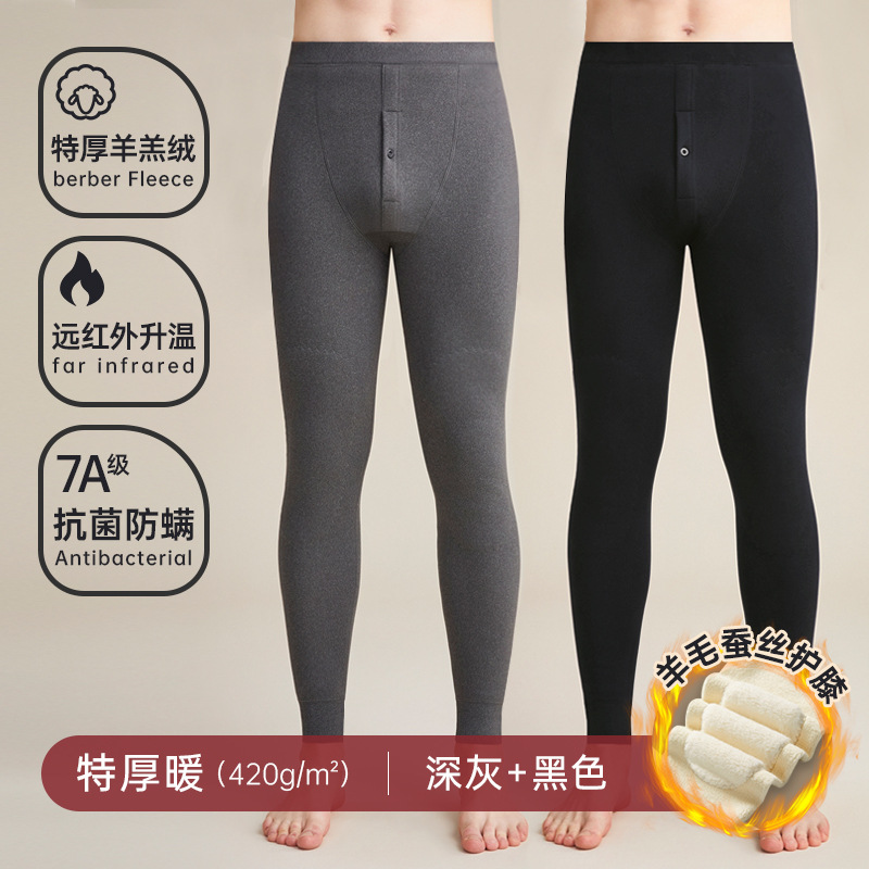 따뜻한 바지 남자의 두꺼운 기모 뜨거운 병 바지 남자 겨울 바지 캐시미어 바지 양모 롱 존스스토어 가기