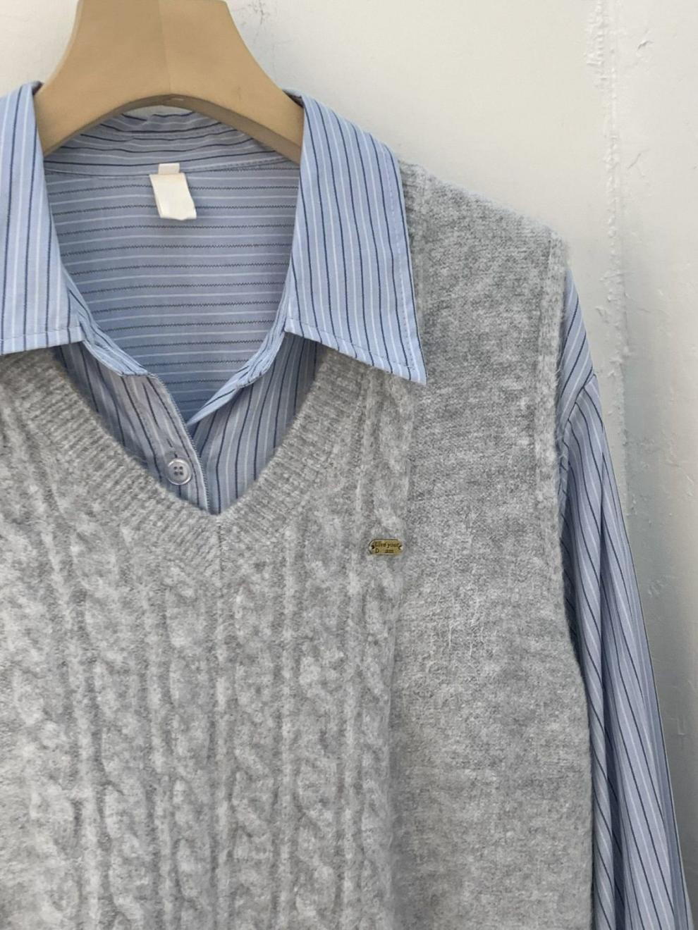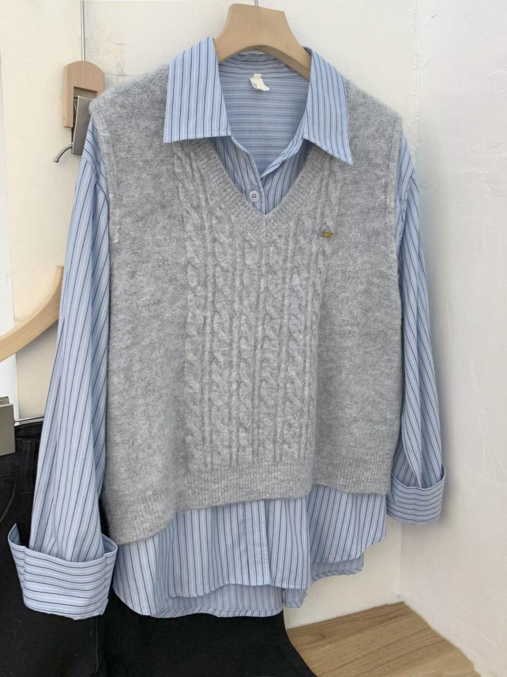 ZZ 컬리지 스타일 그레이 트위스트 브이넥 니트 조끼 여성용 봄 가을 작은 사이즈 셔츠와 겹쳐 입는 스웨터 2025 신상스토어 가기