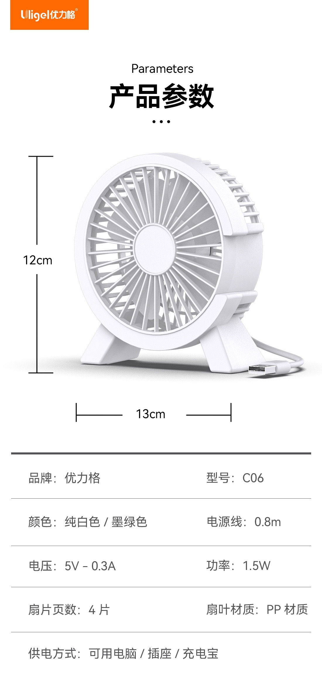 새로운 귀여운 개 귀여운 작은 팬 USB 충전 3 단 각도 조절 데스크탑 침대 옆 가정용 휴대용 선풍기