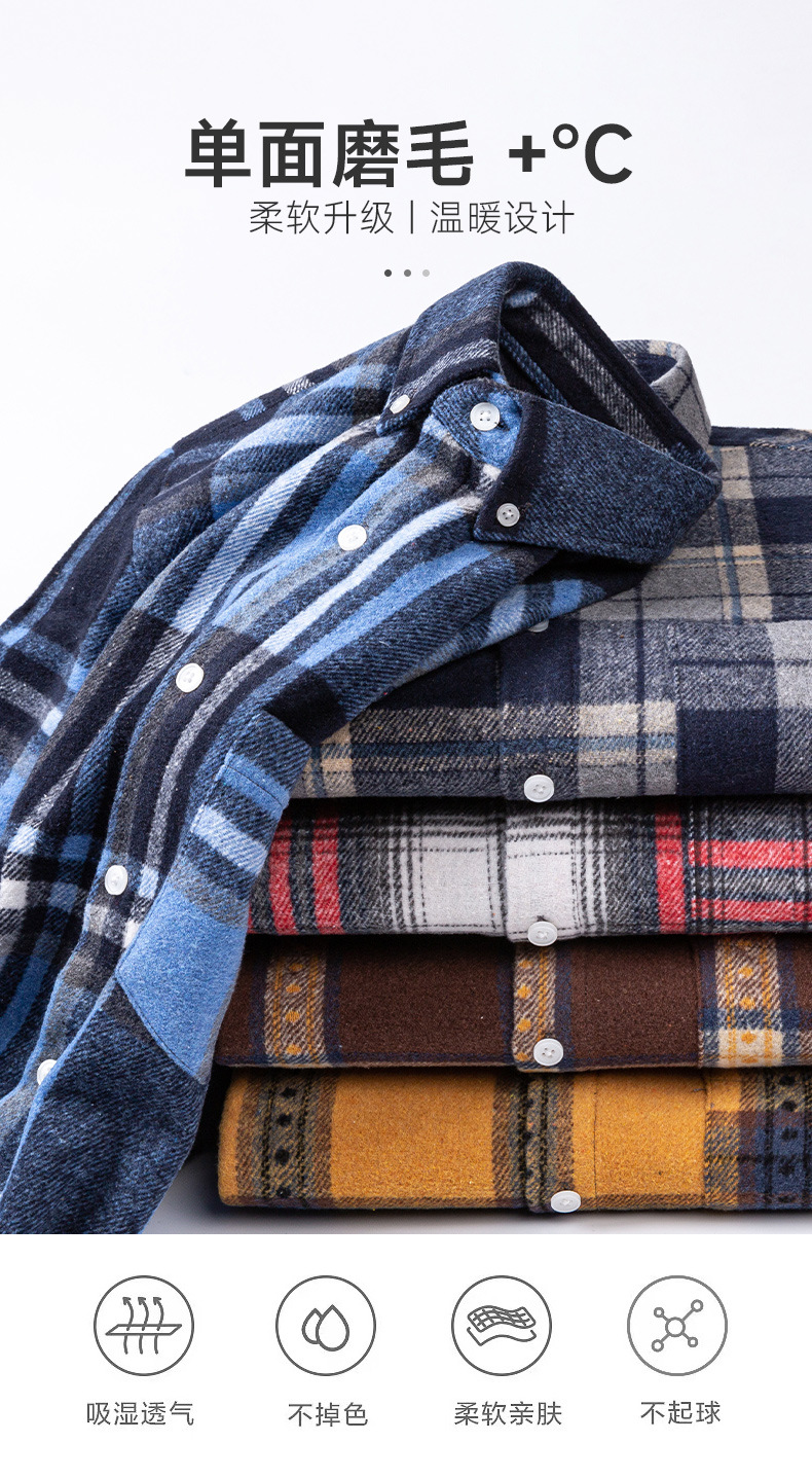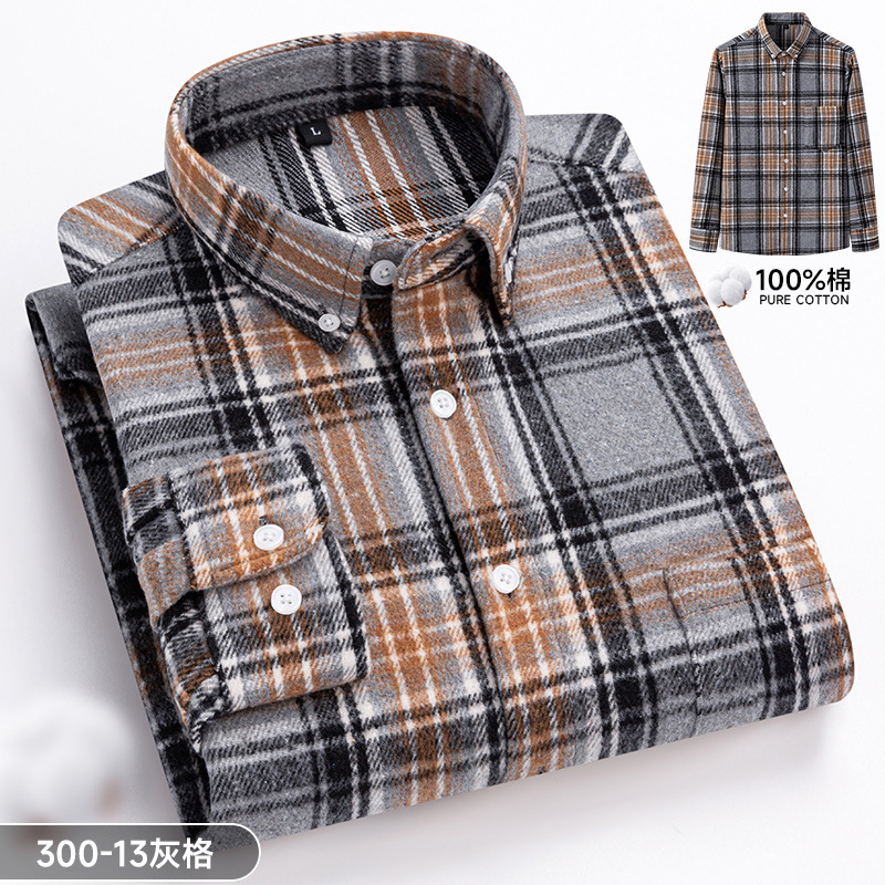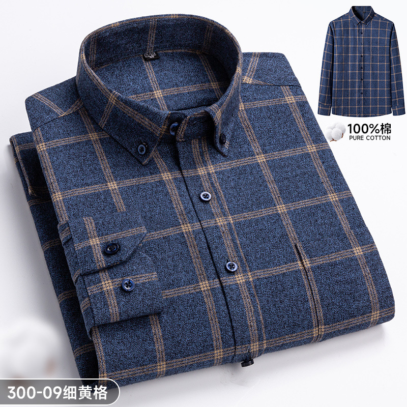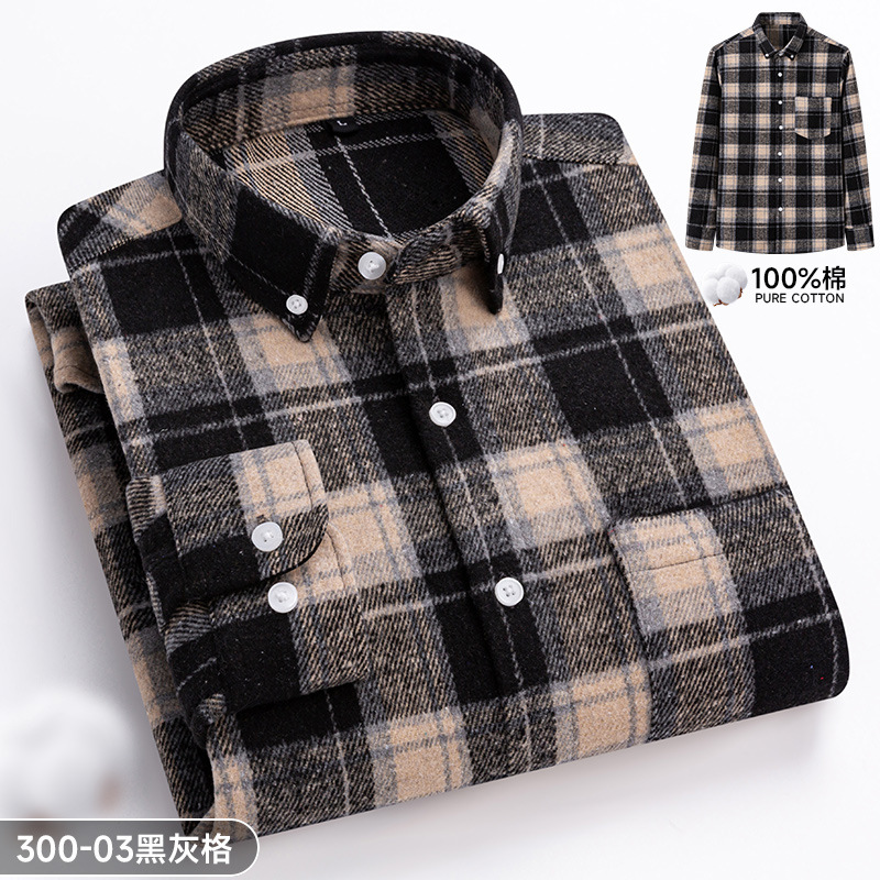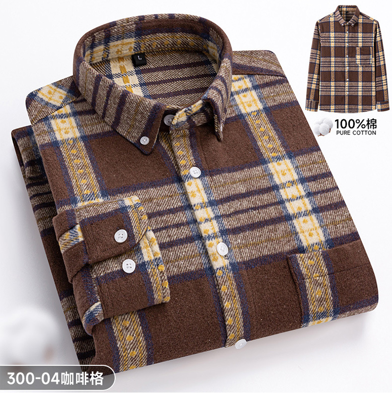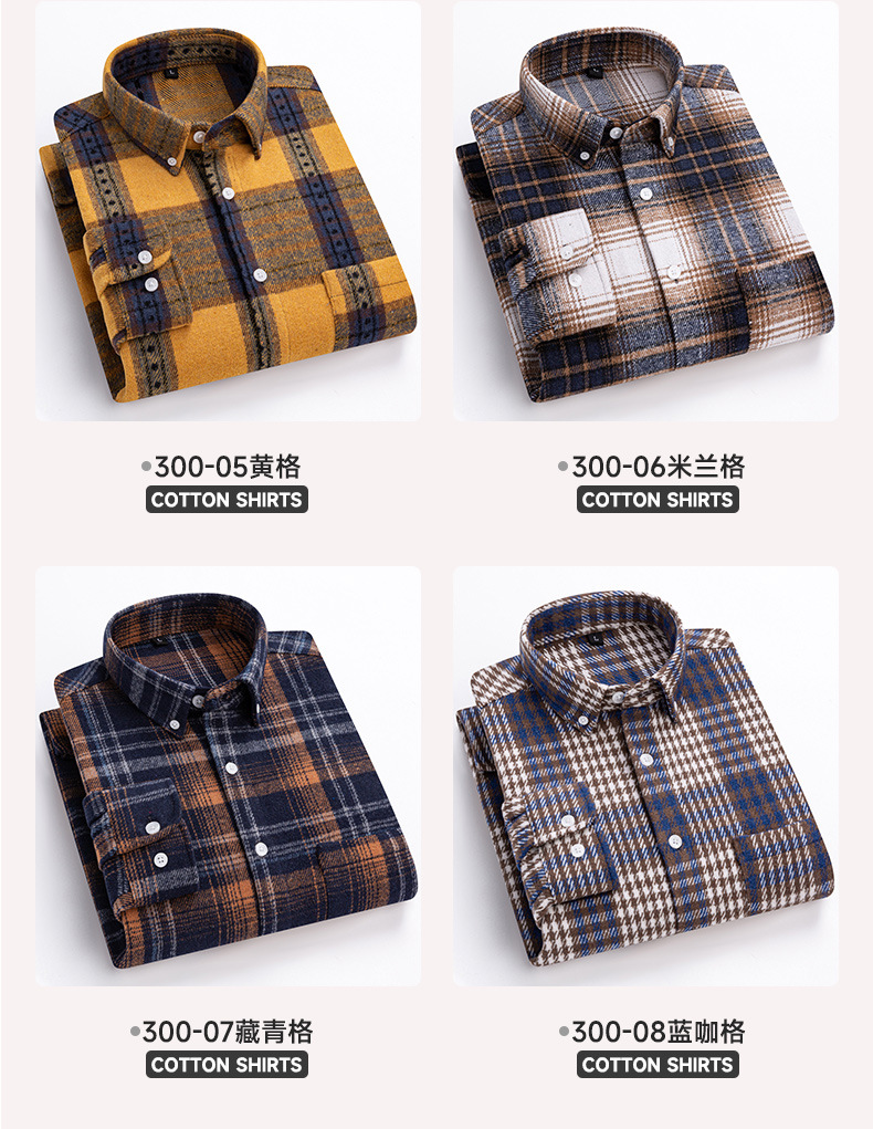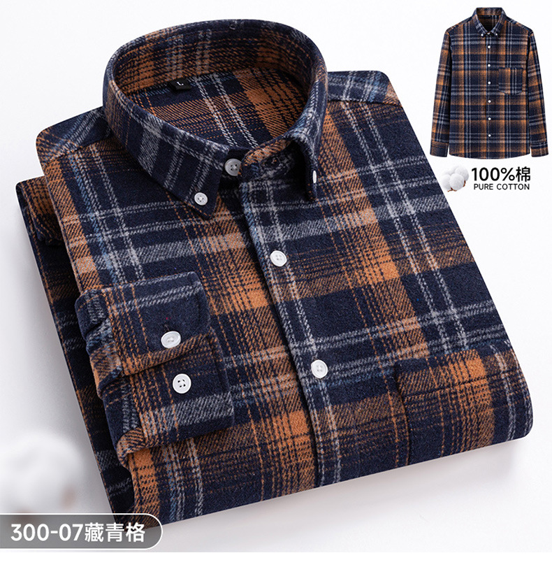 새로운 면 샌딩 격자 무늬 남성용 셔츠 두꺼운 긴 소매 남성용 버튼 칼라가있는 최고 캐주얼 코튼 셔츠스토어 가기