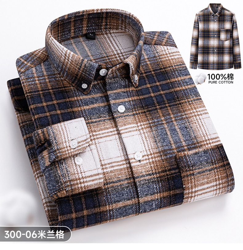 새로운 면 샌딩 격자 무늬 남성용 셔츠 두꺼운 긴 소매 남성용 버튼 칼라가있는 최고 캐주얼 코튼 셔츠