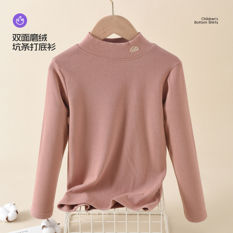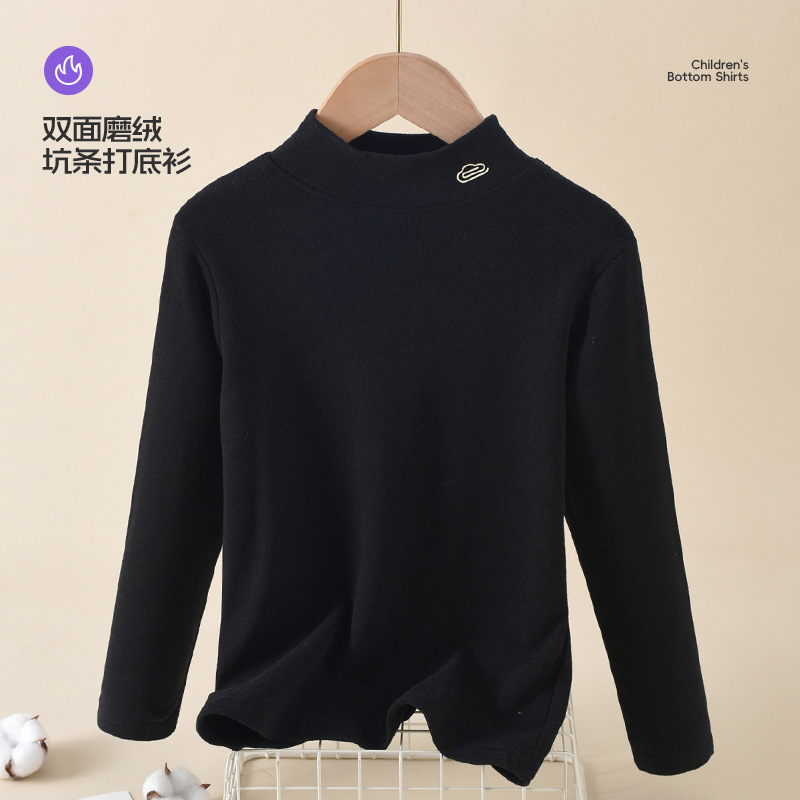 반 높이 칼라 아동베이스 셔츠 봄 가을 겨울 내부 2024 새로운 가을 착용 남성 아동복 소녀 탑 큰 어린이 가을 옷스토어 가기
