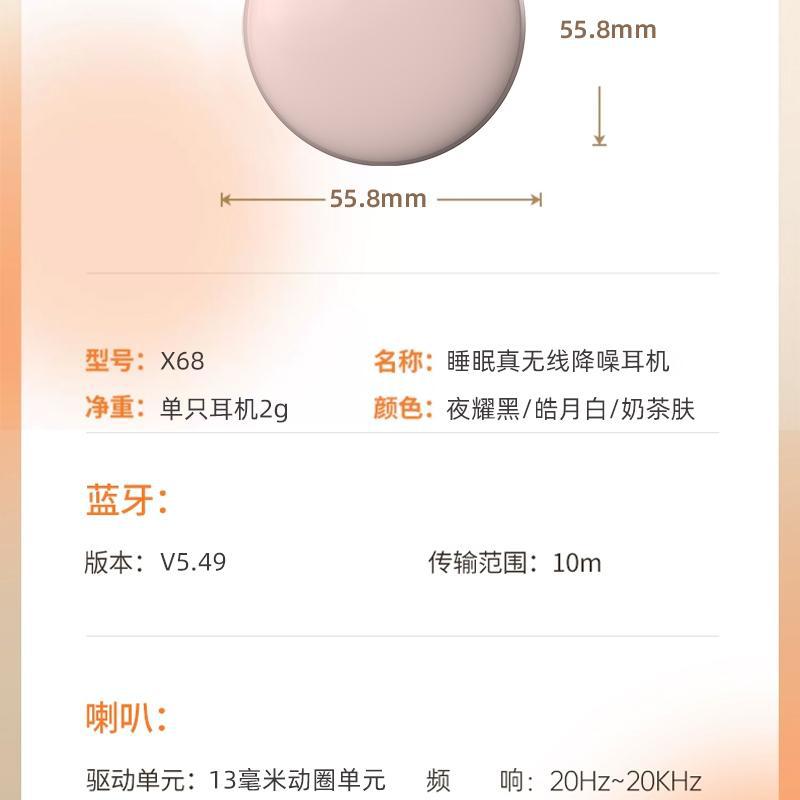 X68 수면 블루투스 이어폰 진정한 무선 인이어 게임용 러닝 소음 감소 측면 수면 전용 5.49 수면 전용스토어 가기