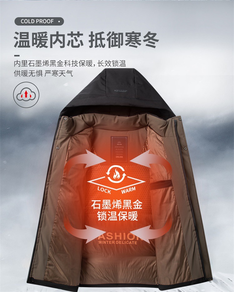 2024 남성용 겨울 신상 그래핀 보온 경량 면옷 방한 보온 중년용 겨울 코트
