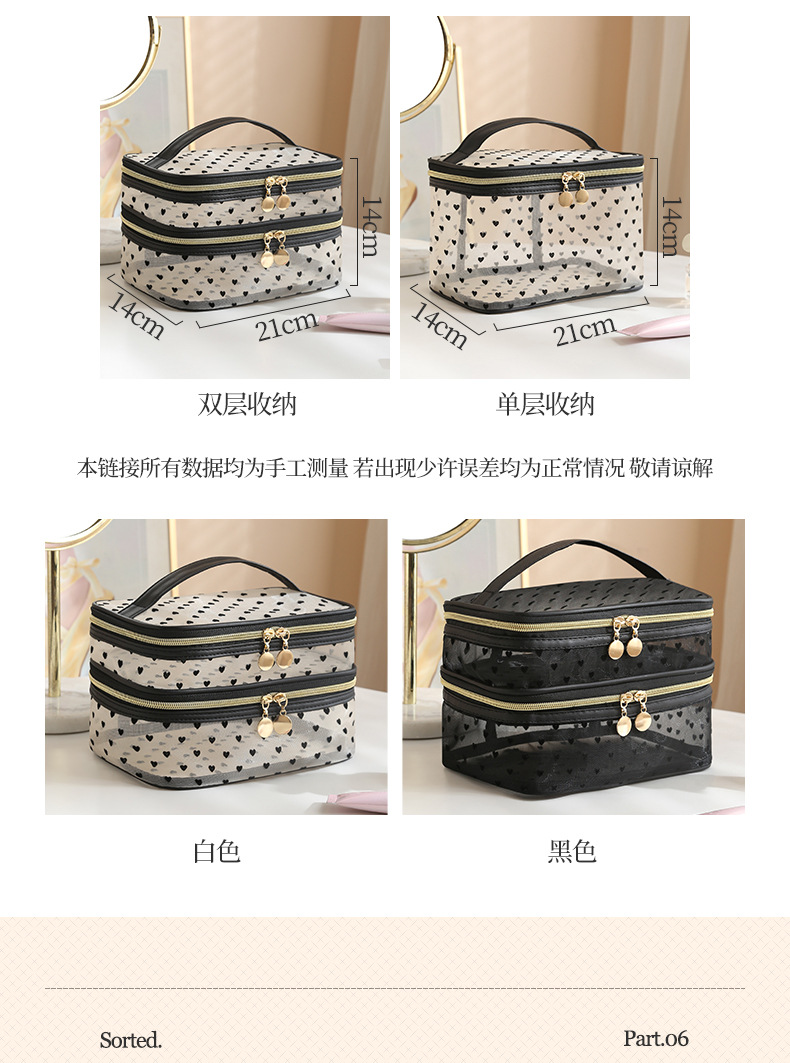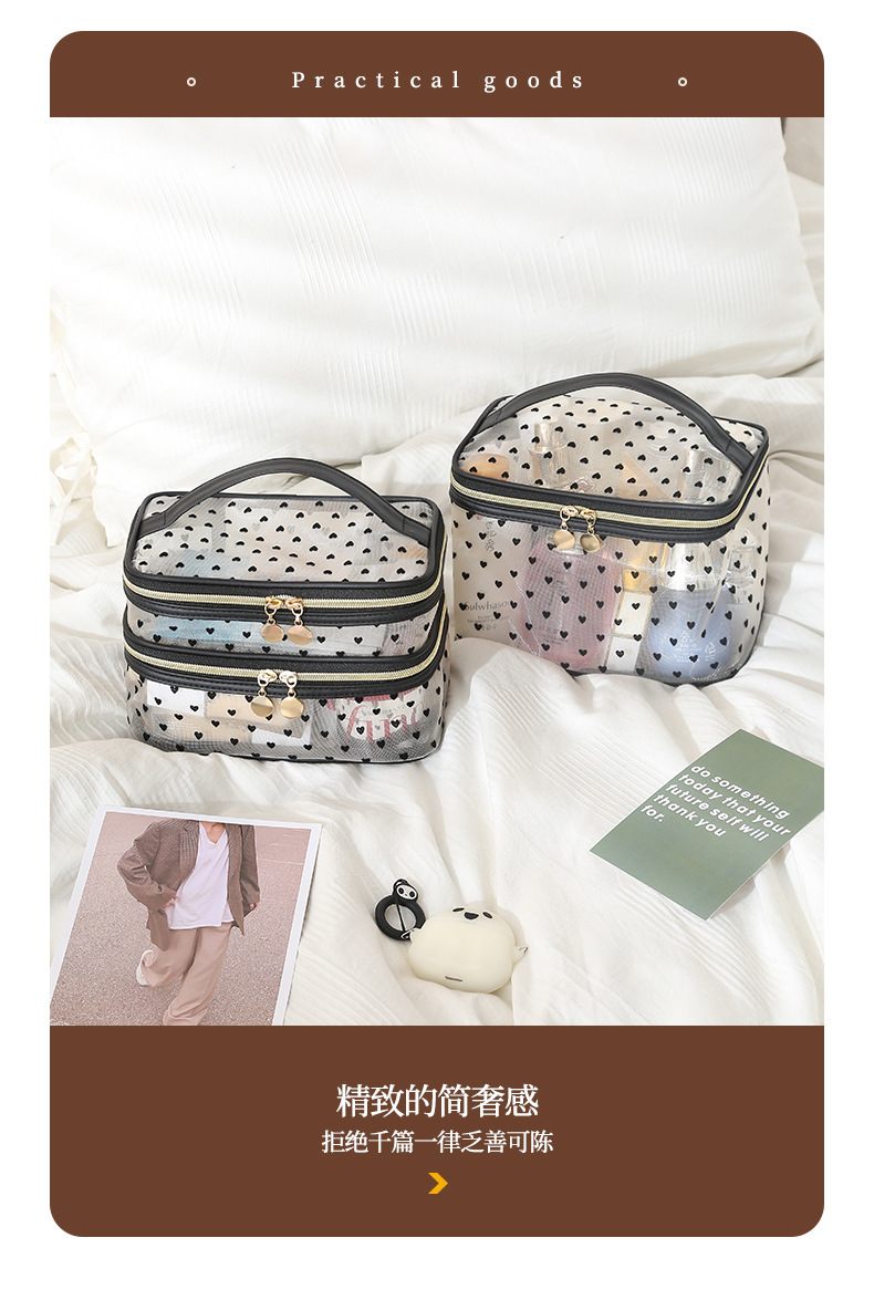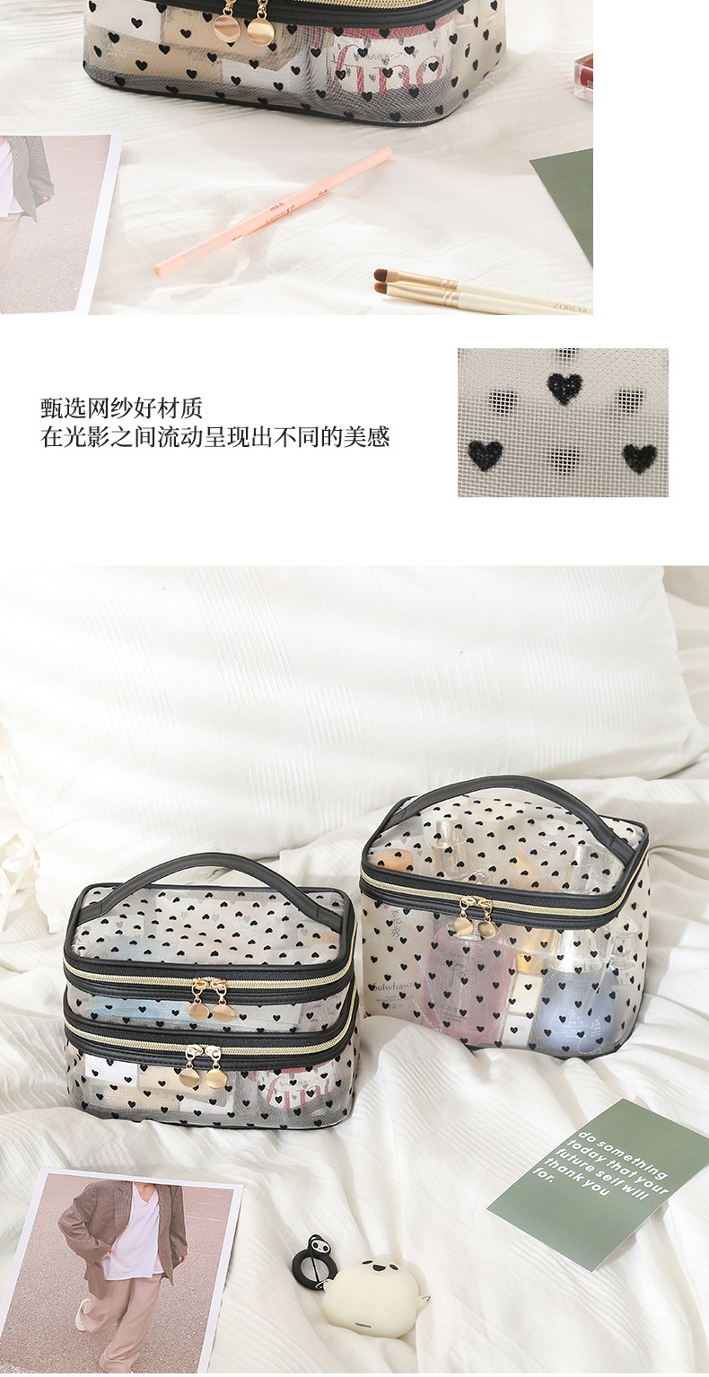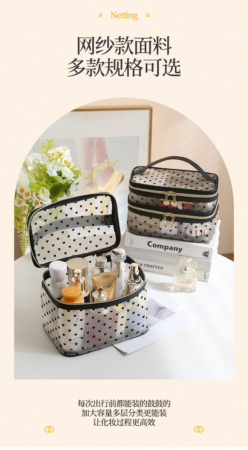 사랑 융합 메쉬 메이크업 가방 저장 가방 여행 다기능 대용량 휴대용 통기성 지퍼 세척 가방