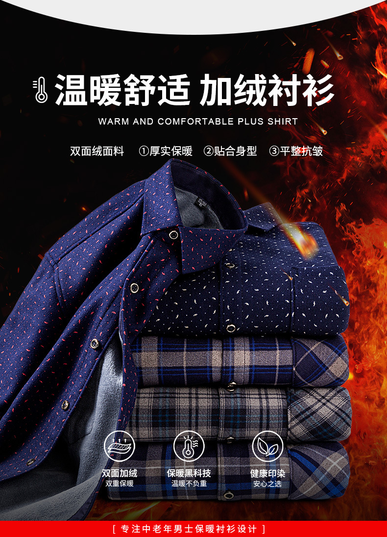 남성용 플리스 셔츠, 중년 및 노년 남성용 보온 셔츠, 두꺼운 격자무늬 양면 플리스 고급 면 셔츠, 두꺼운 방한복스토어 가기