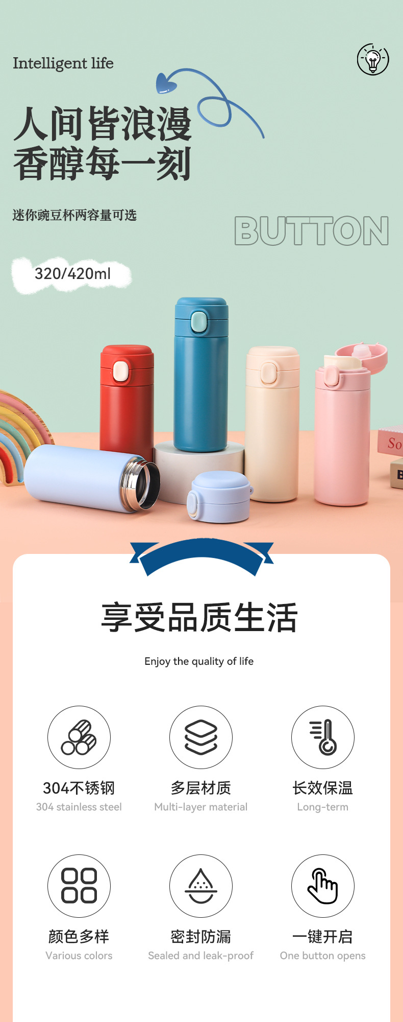 간단한 미니 완두콩 컵 304 스테인레스 스틸 보온병 컵 남녀 학생 반송 컵 선물 컵 로고스토어 가기