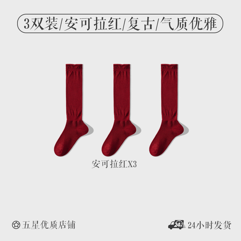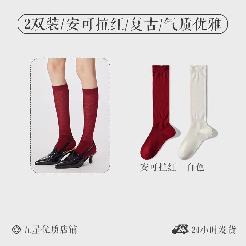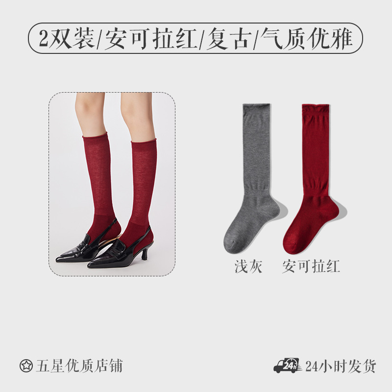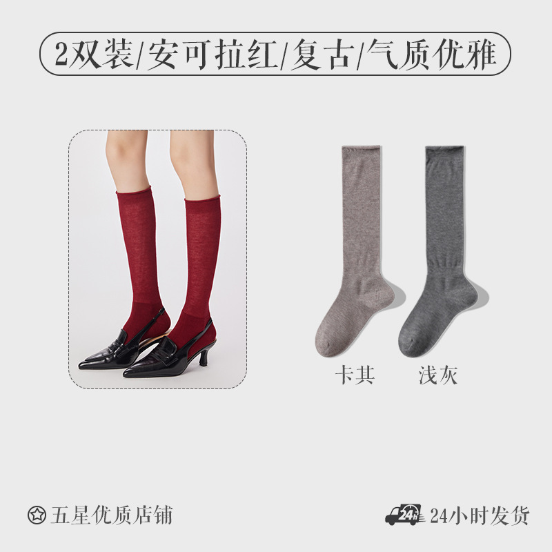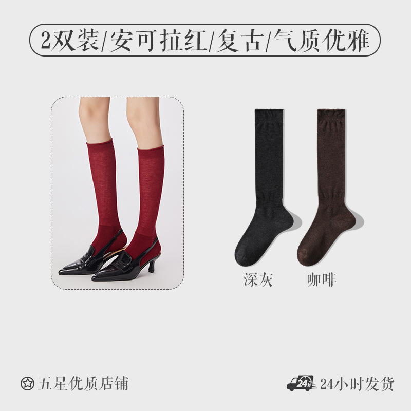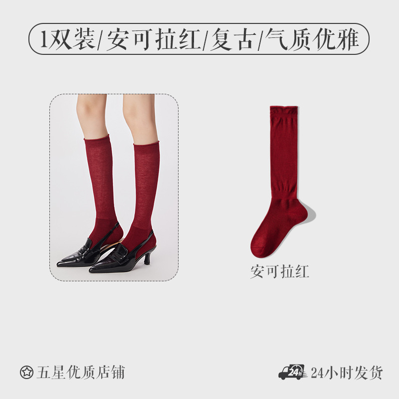 양모 양말 어린이 종아리 양말 가을과 겨울 얇은 곱슬 슬리밍 복고풍 패션 Ancora 붉은 뼈없는 더미 양말