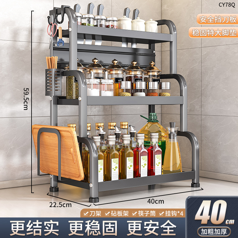 • [건그레이 3단 40cm] 칼꽂이 + 젓가락통 + 도마걸이 포함