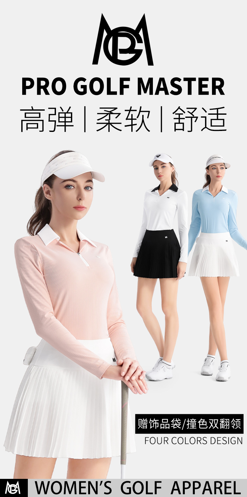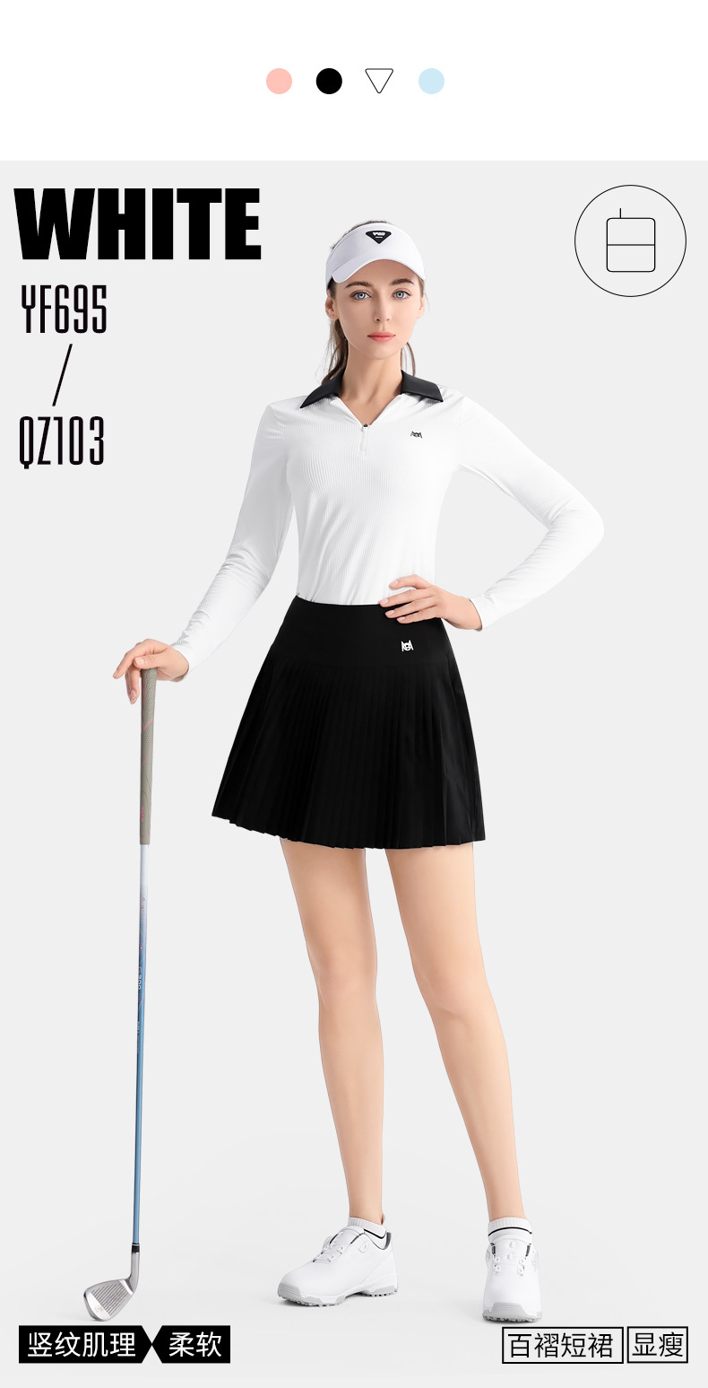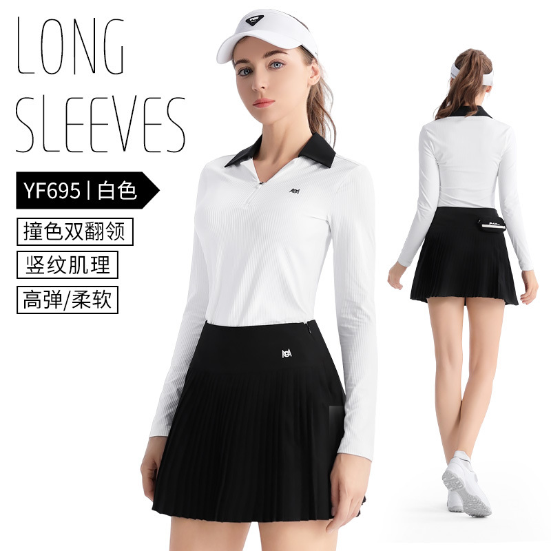PGM 골프 의류 여성베이스 셔츠 옷깃 여성 스커트 탑 주름 치마 스포츠 세트 긴 소매 티셔츠스토어 가기