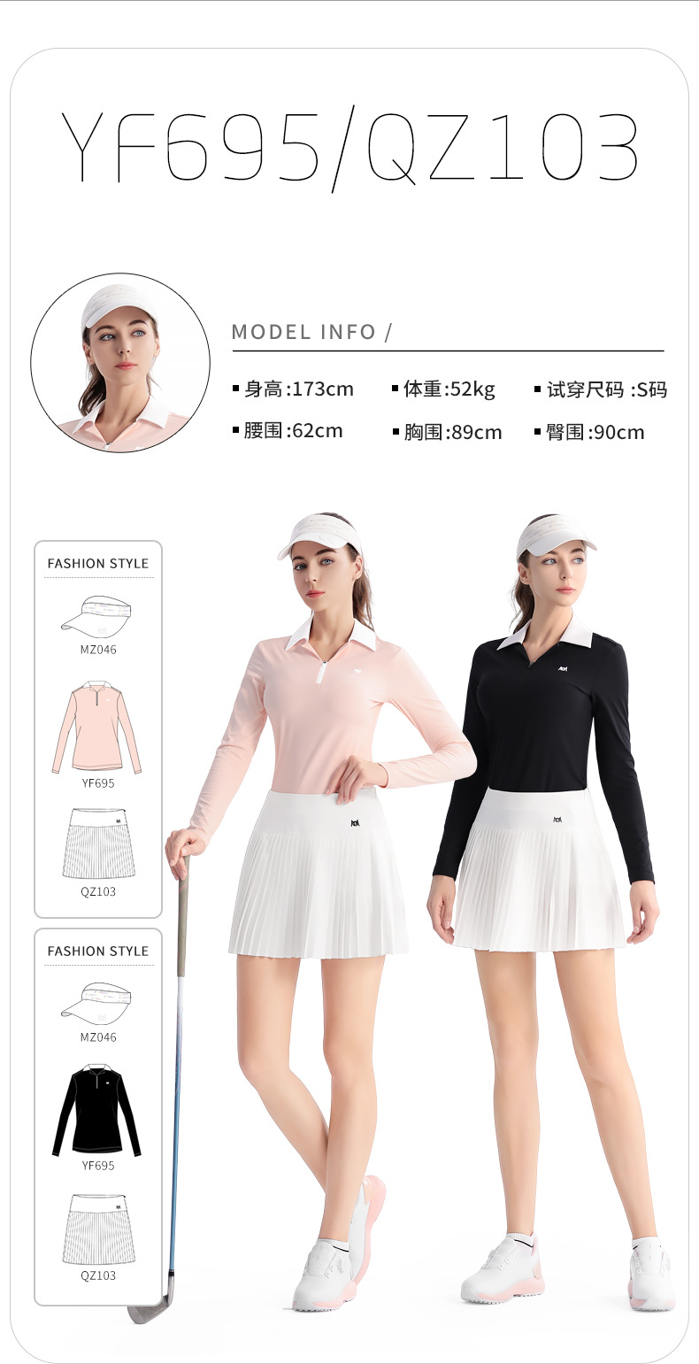 PGM 골프 의류 여성베이스 셔츠 옷깃 여성 스커트 탑 주름 치마 스포츠 세트 긴 소매 티셔츠