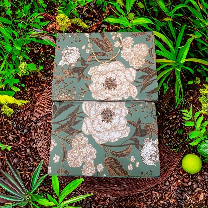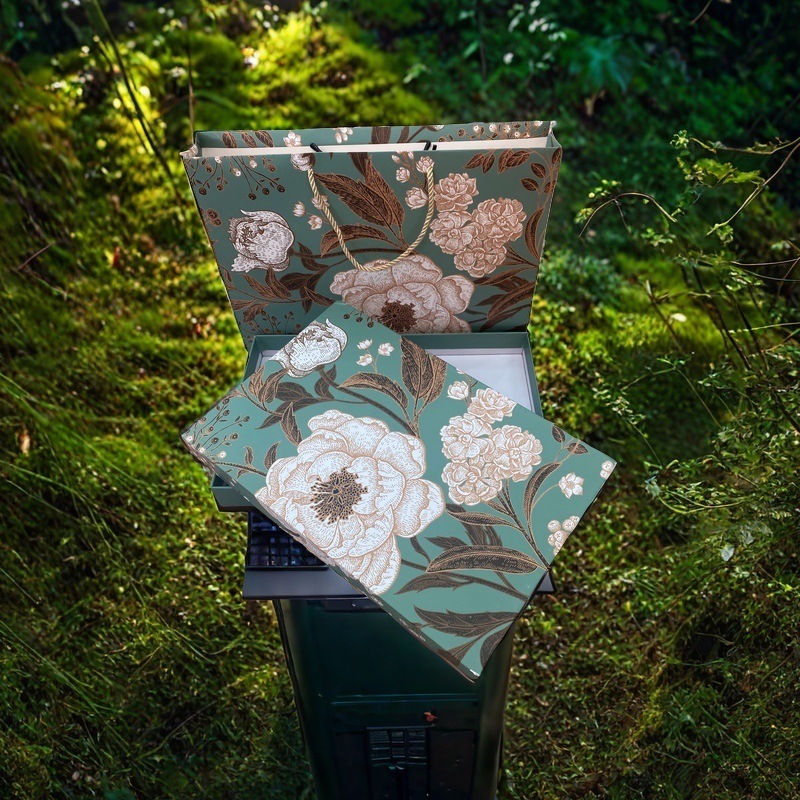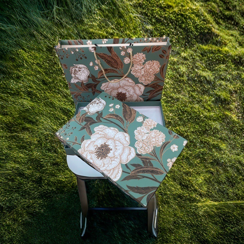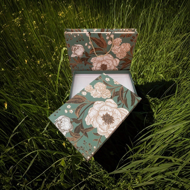 • 녹색 꽃 하늘과 땅 덮개 선물 상자, 완전한 세트