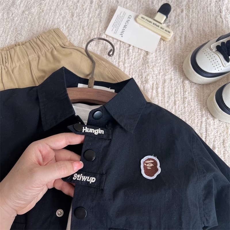 작은 천 곰 어린이 셔츠 가을 새 소년 인쇄 된 대형 포켓 재킷 셔츠 아기의 맞춤형 올 매치 재킷스토어 가기