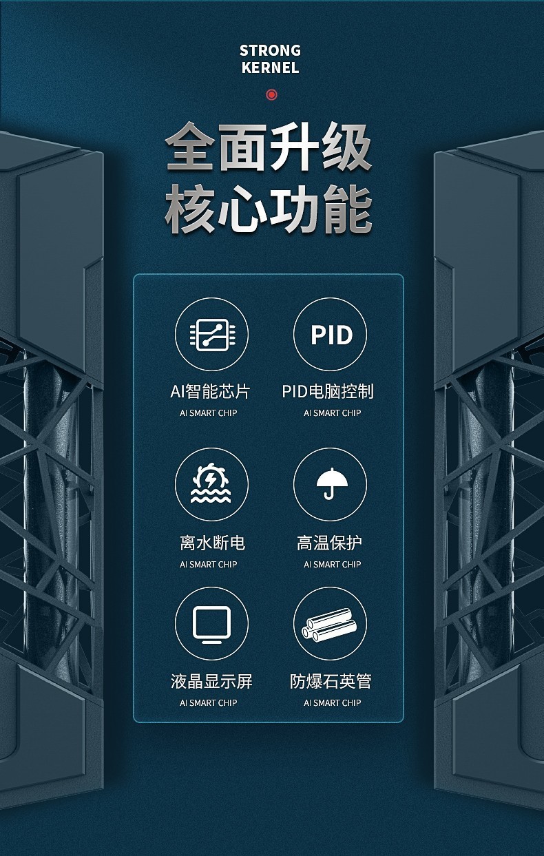 • 업그레이드된 PTC 백색광 가열봉 1000W