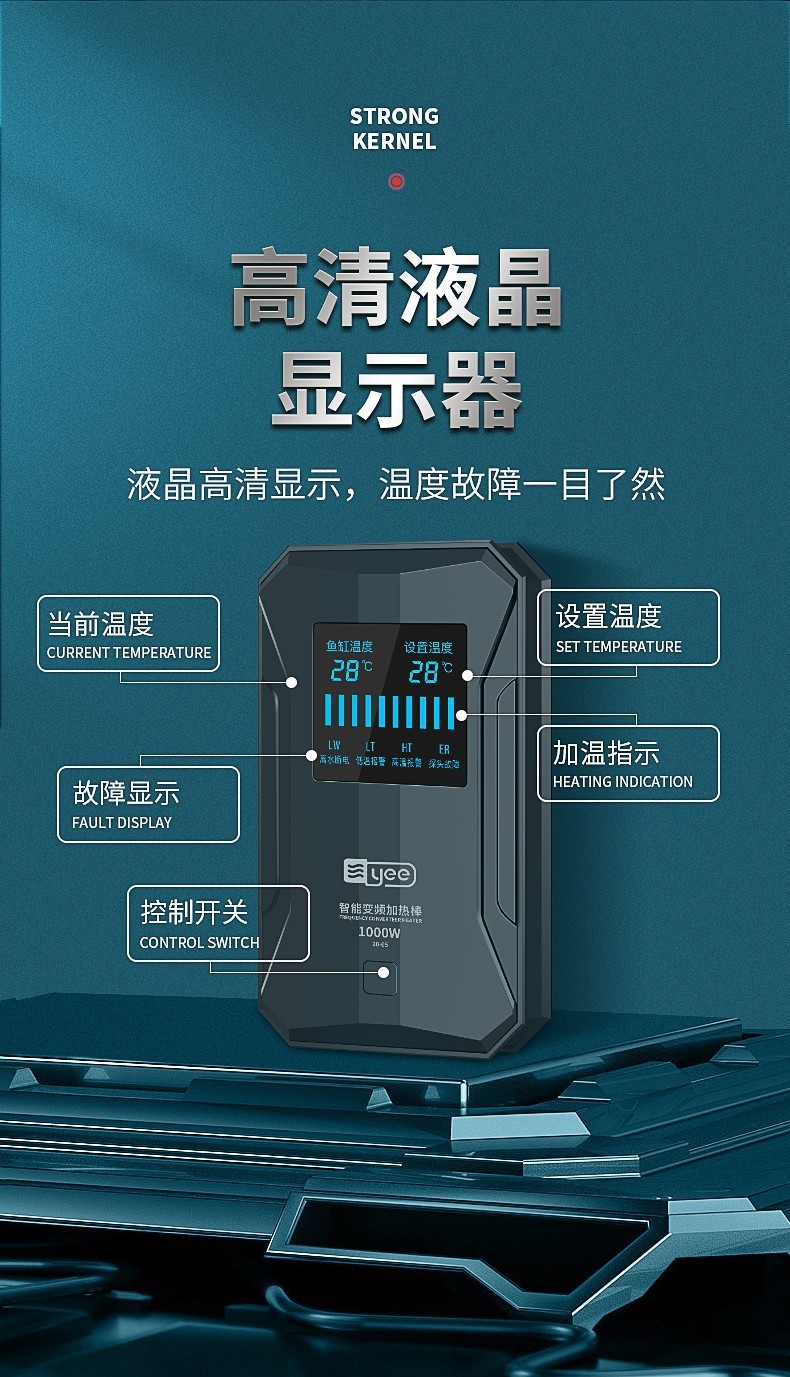 Yee 물고기 탱크 디지털 디스플레이 가열 막대 자동 폭발 방지 가열 막대 수족관 LED 고출력 온도 디스플레이 히터 국경