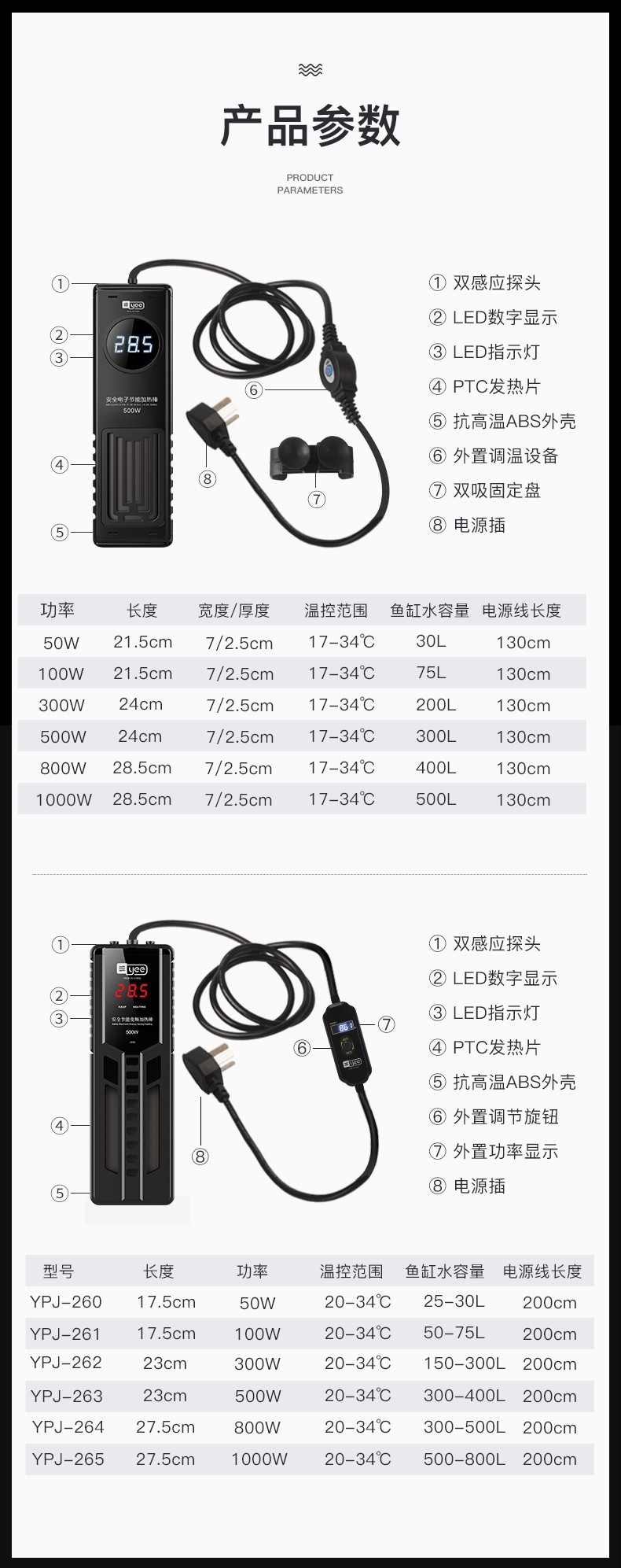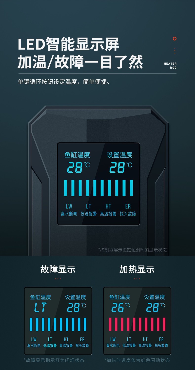 Yee 물고기 탱크 디지털 디스플레이 가열 막대 자동 폭발 방지 가열 막대 수족관 LED 고출력 온도 디스플레이 히터 국경스토어 가기