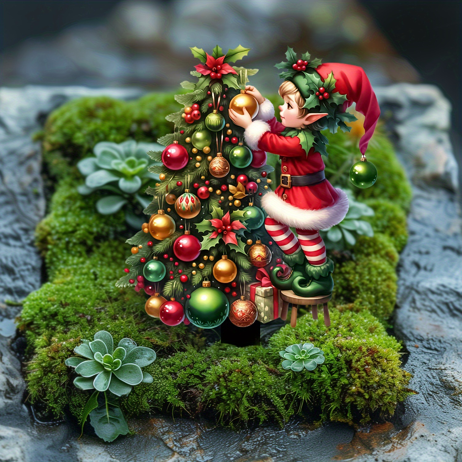 국경 간 휴일 크리스마스 엘프와 나무 정원 실내 및 실외 아크릴 장식 방수 내마모성 바닥 장식 도로스토어 가기