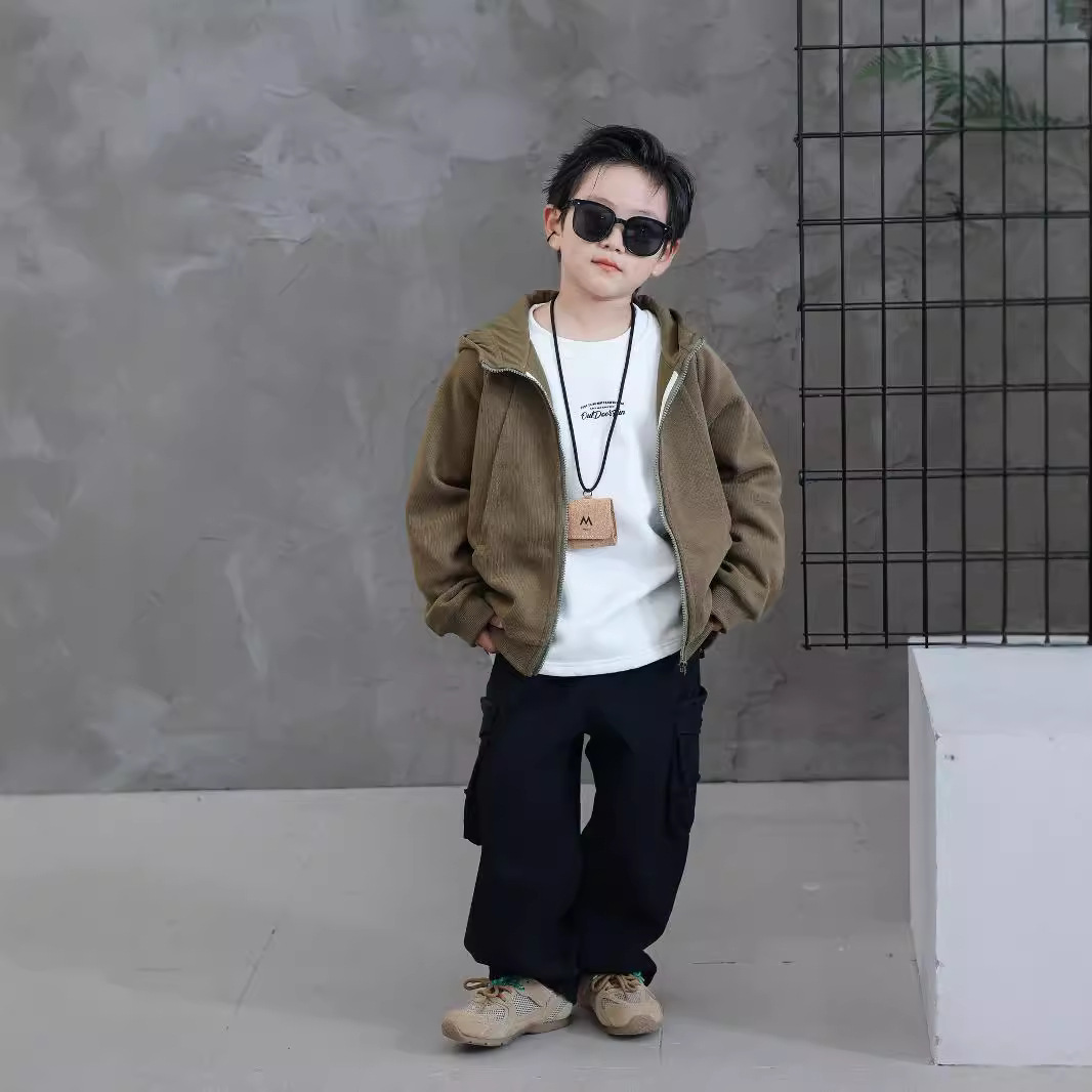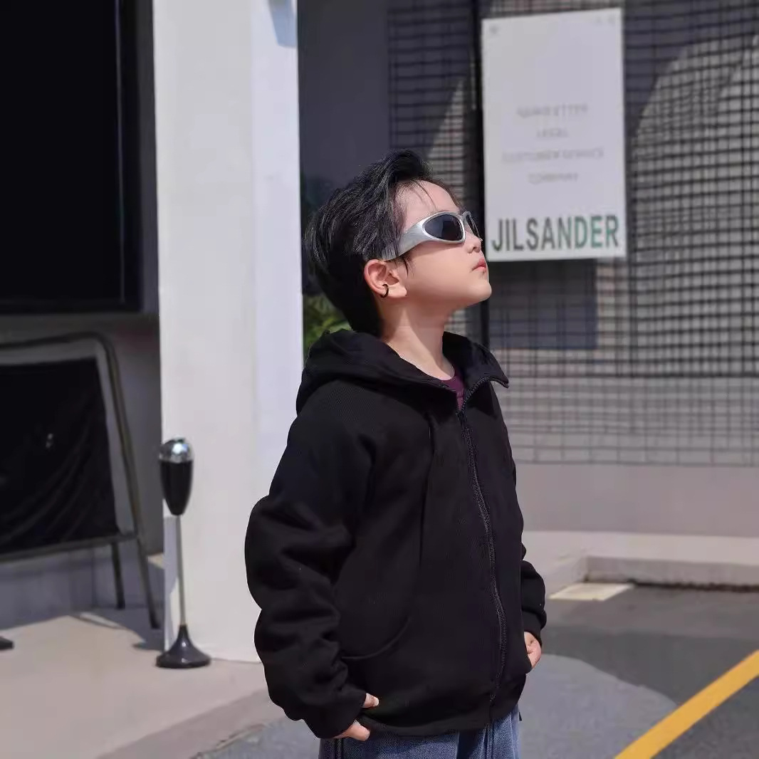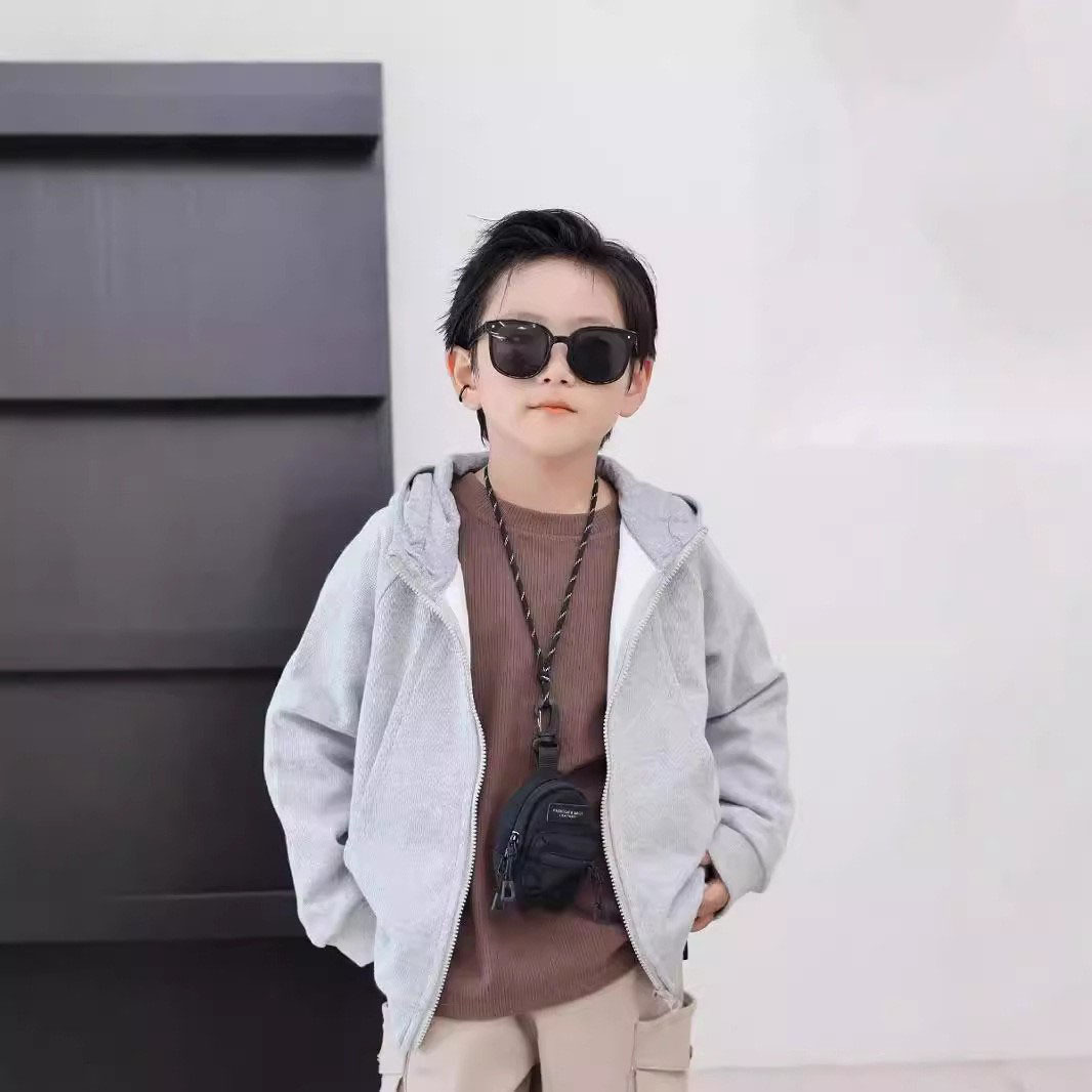 2024 새로운 소년 스포츠 재킷 어린이 후드 스웨터 카디건 큰 어린이 가을 유행 니트 탑스토어 가기