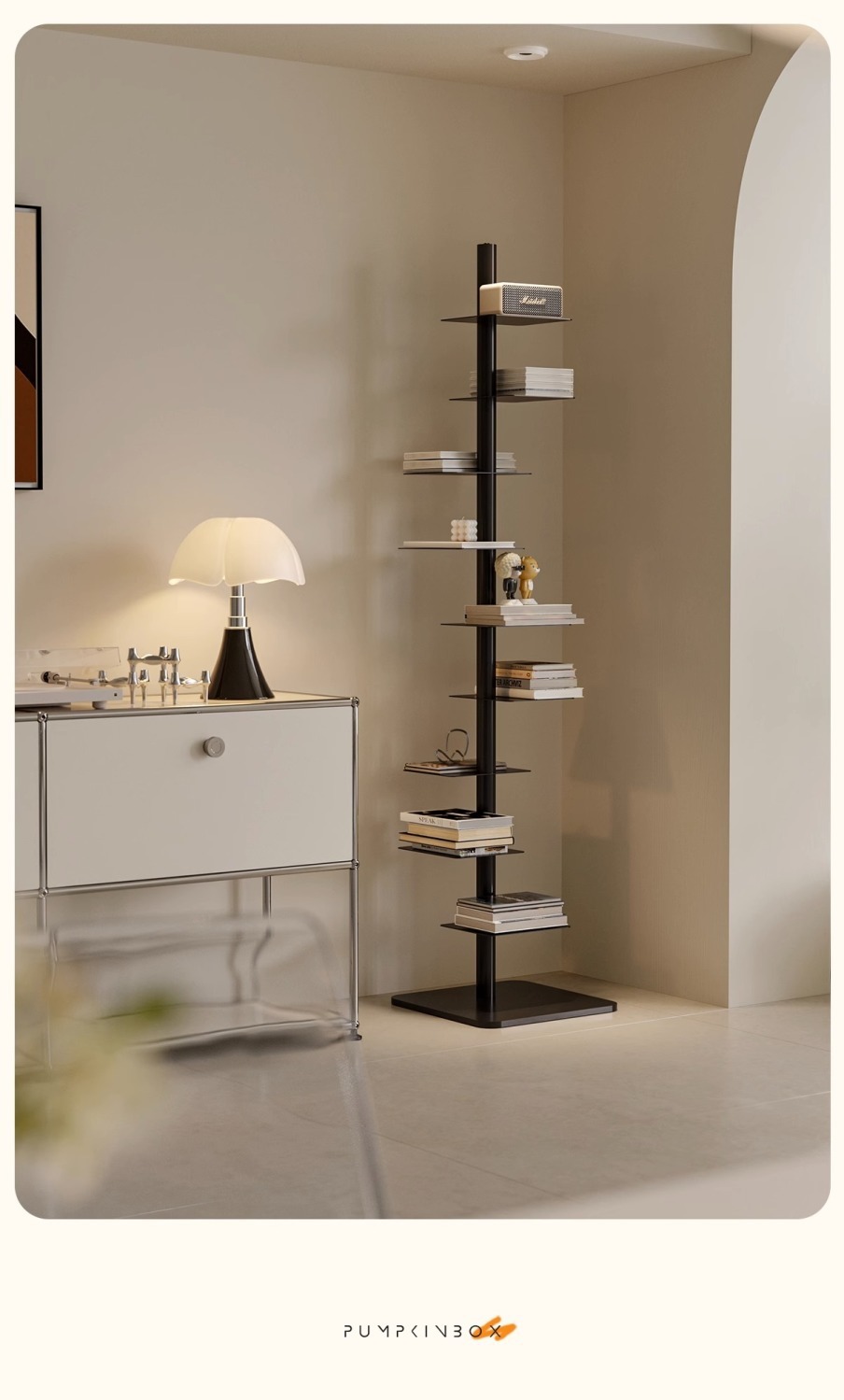 디자이너 책장 회전 보이지 않는 나선형 디스플레이 랙 거실 철 홈 코너 랙 실내 좁은 책장