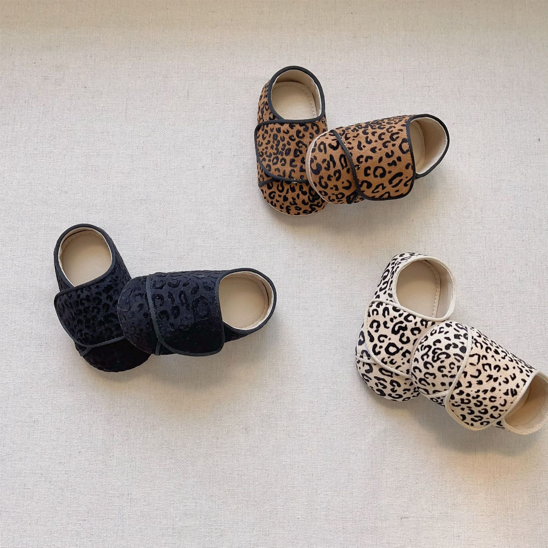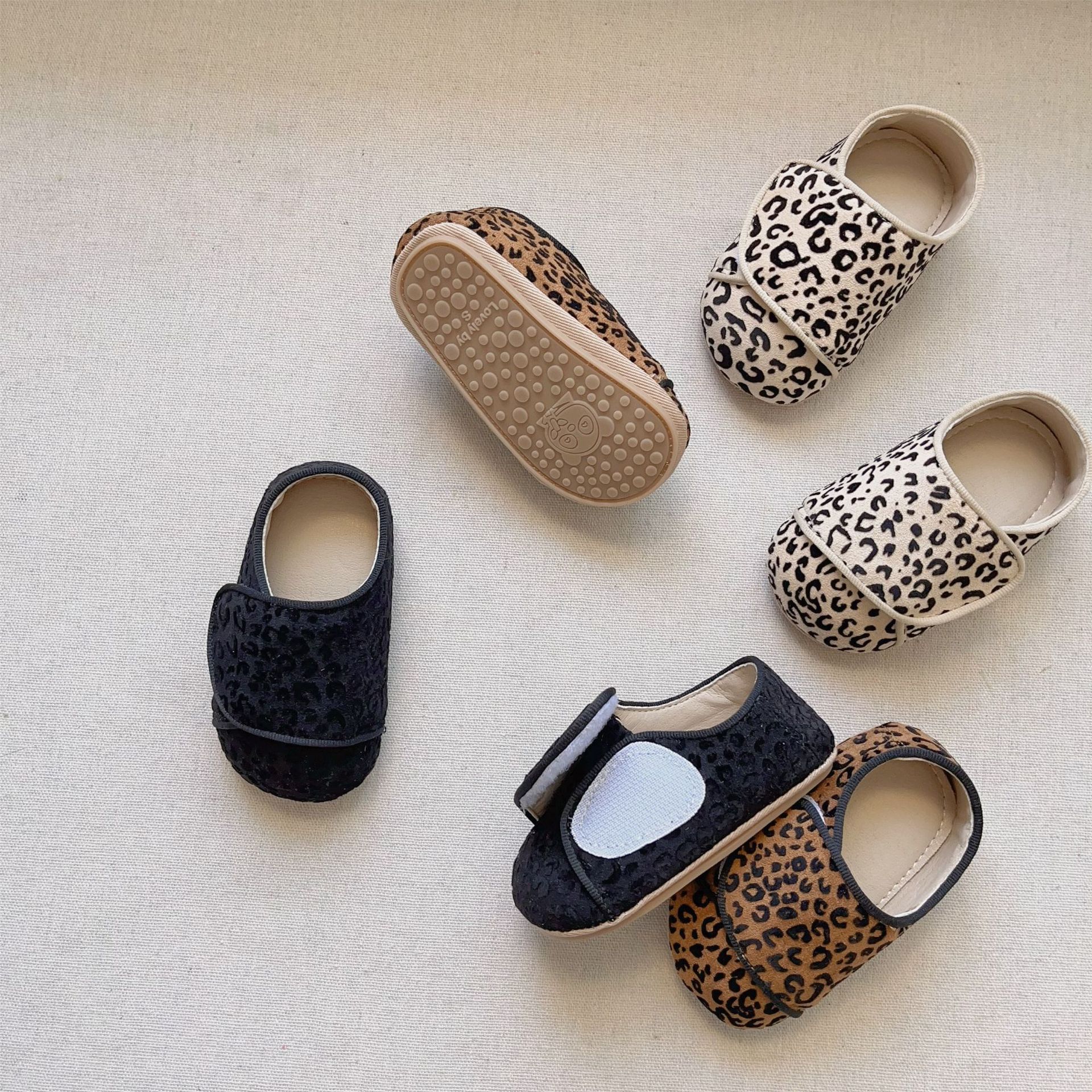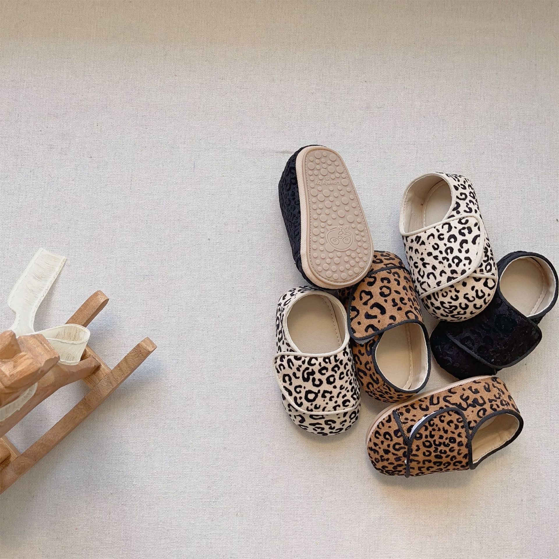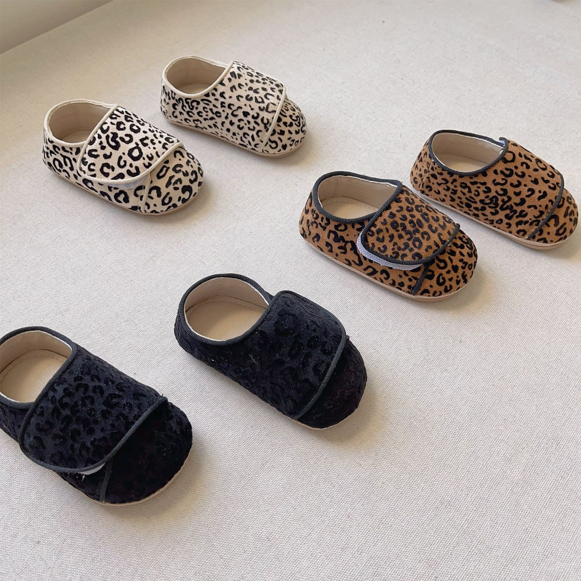 한국 스타일의 새로운 아기 유아 신발 벨크로 미끄럼 방지 부드러운 바닥 부드러운 표면 스테레오 잠금 인쇄 된 레오파드 무늬 빵 신발스토어 가기