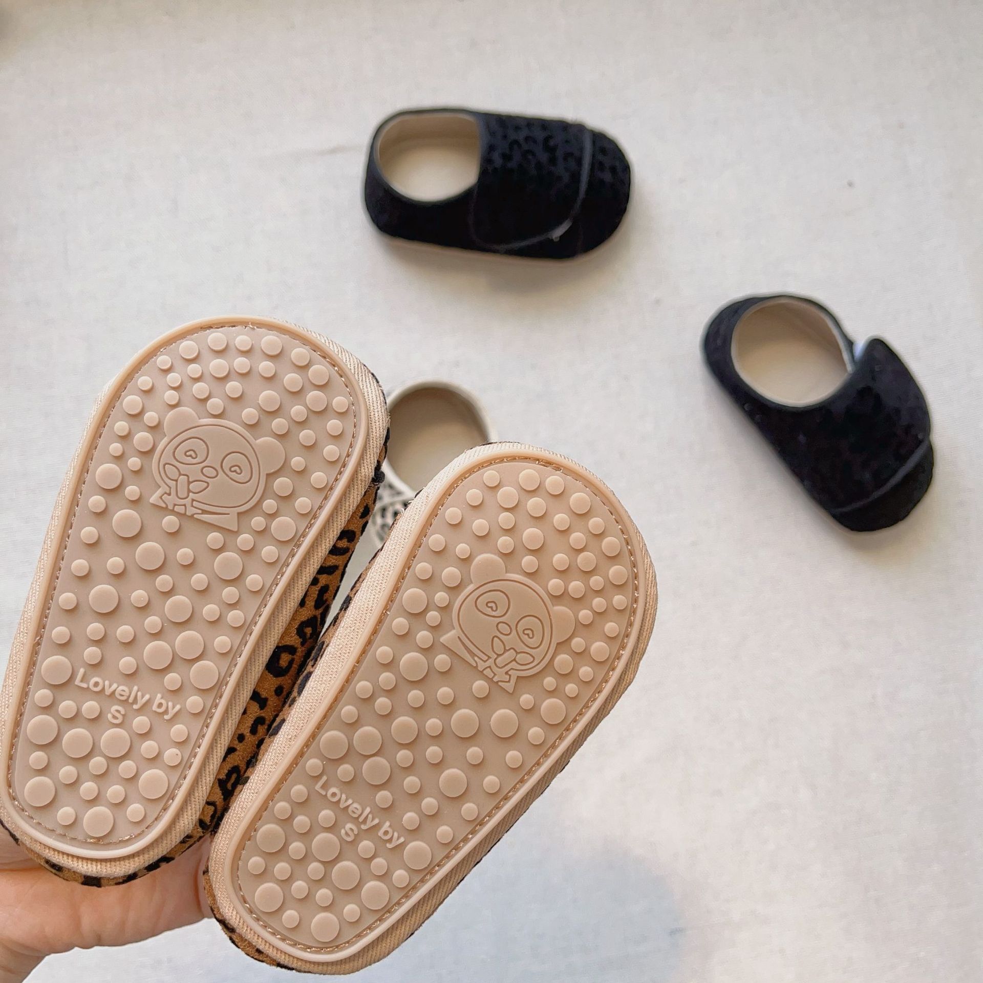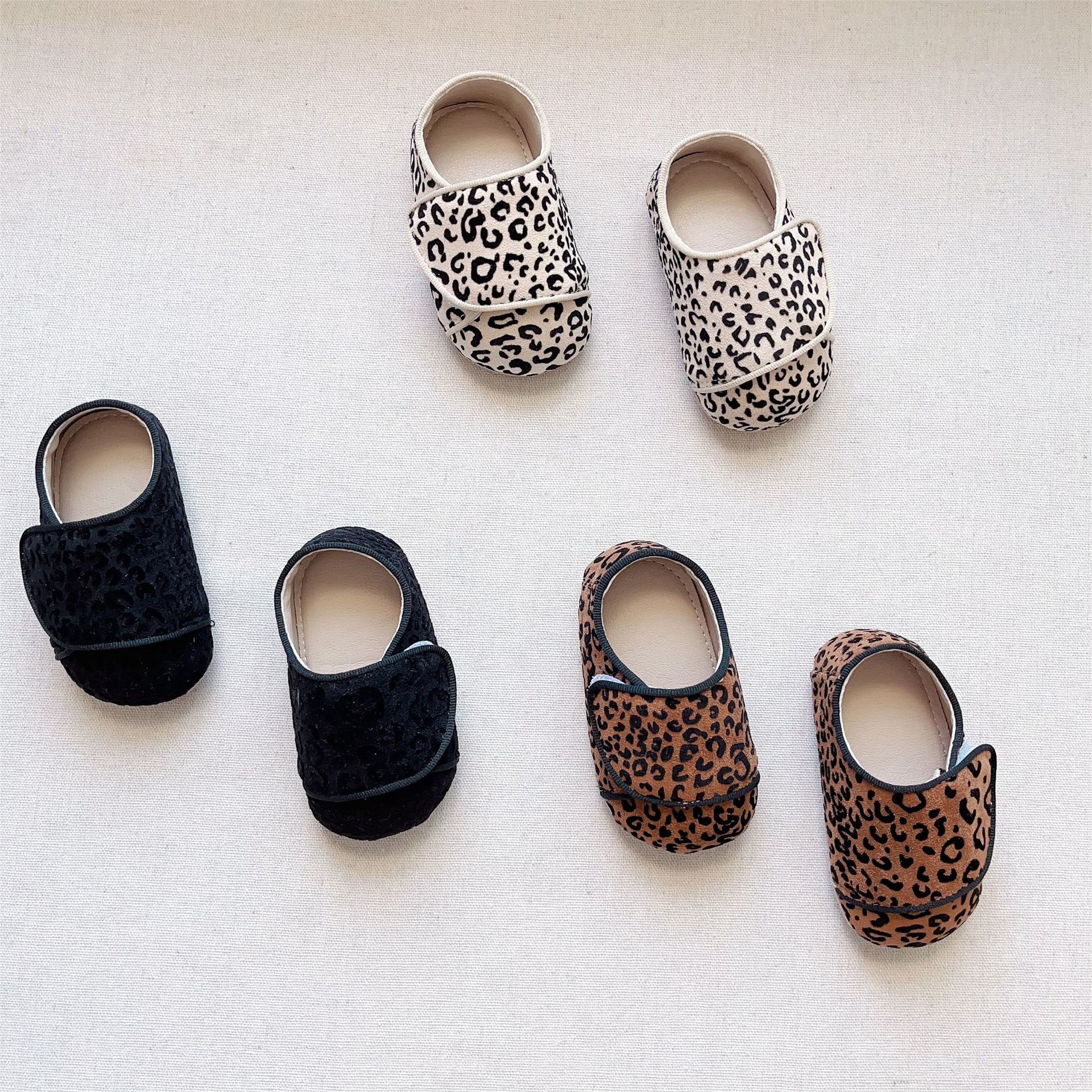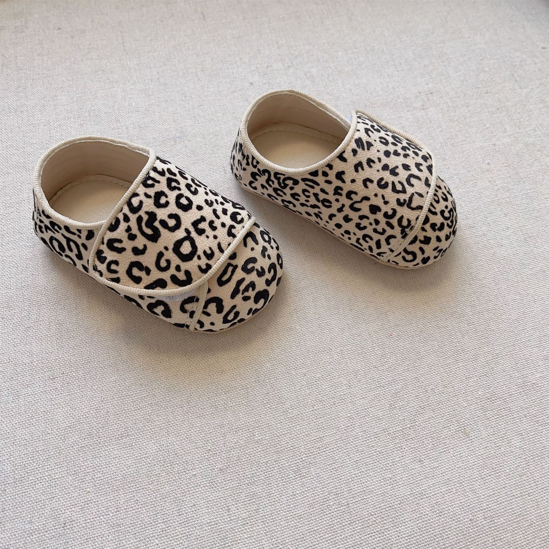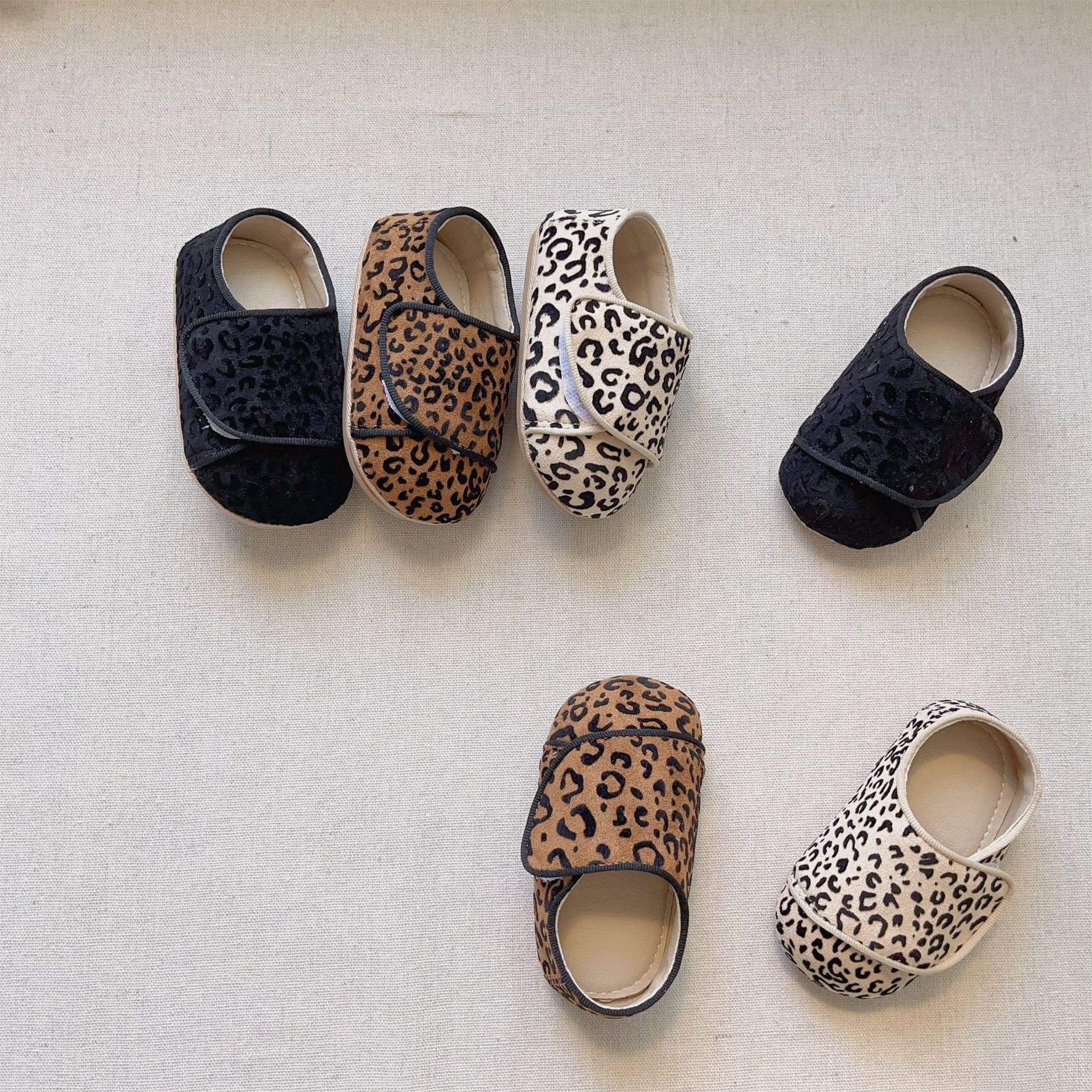 한국 스타일의 새로운 아기 유아 신발 벨크로 미끄럼 방지 부드러운 바닥 부드러운 표면 스테레오 잠금 인쇄 된 레오파드 무늬 빵 신발스토어 가기
