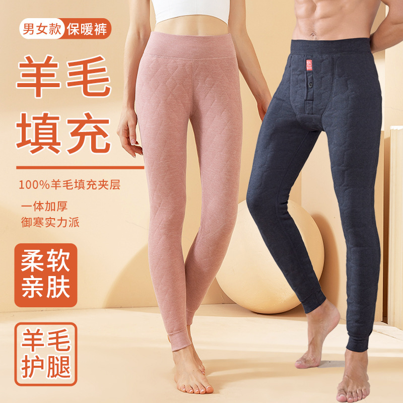 라이브 폭발 남녀 양모 면화 바지 겨울 감기 방지 기모 따뜻한 바지 높은 허리 내부 착용 울 바지