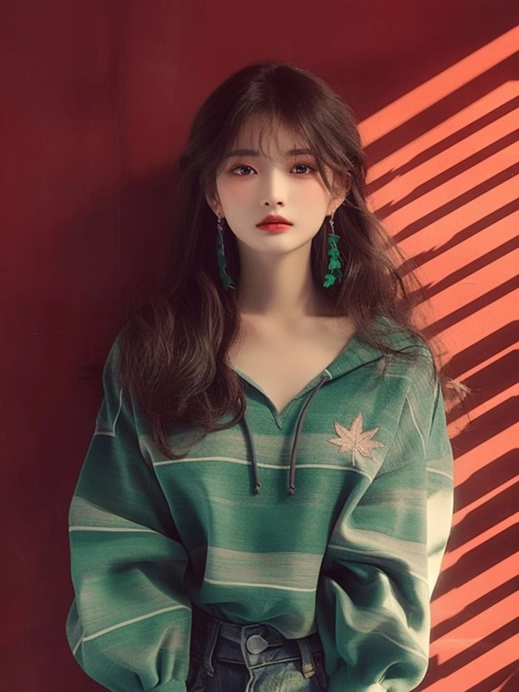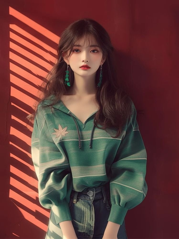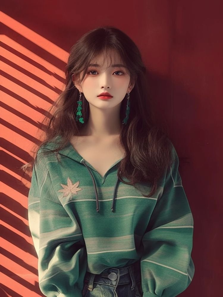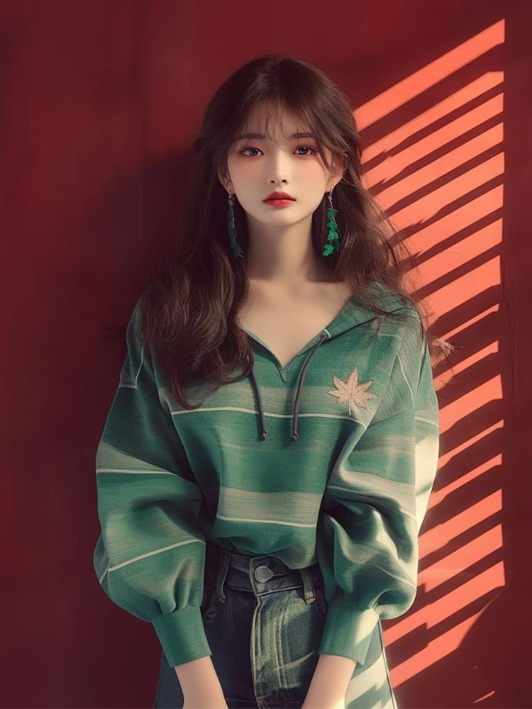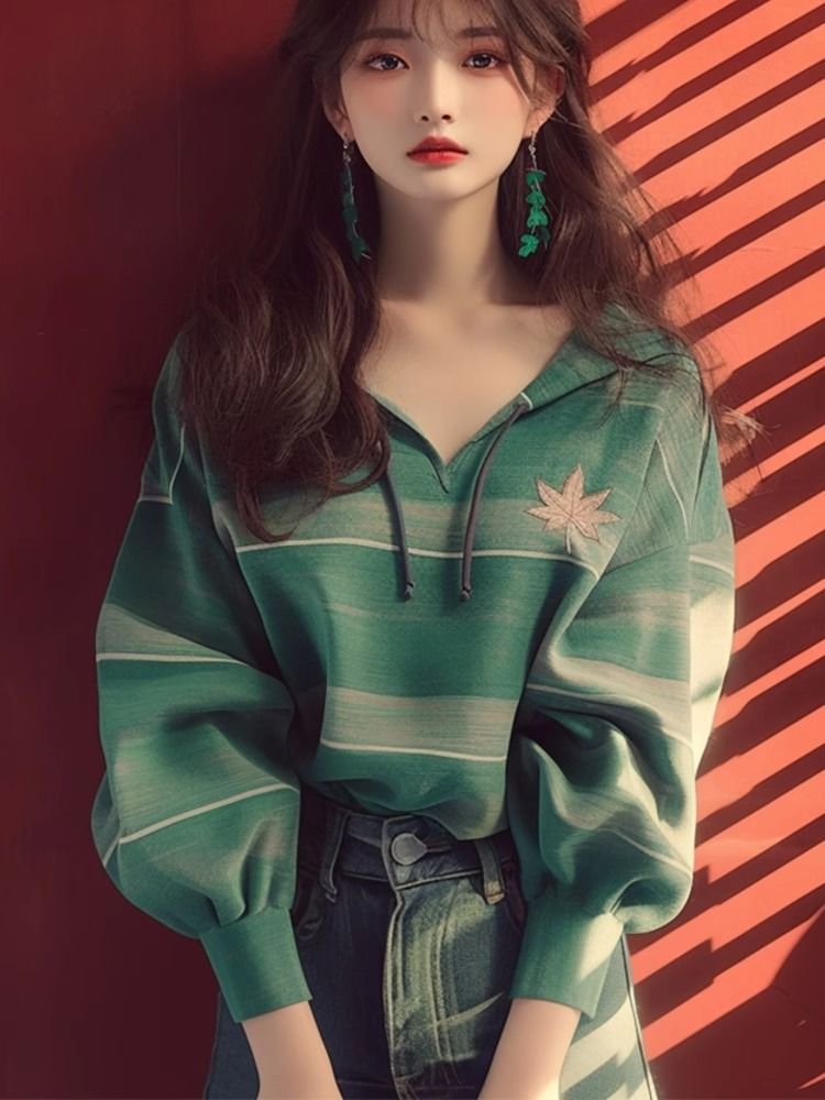 2024 년 초 가을 새로운 인기 인기 인기 한국 틈새 디자인 센스 느슨한 슬리밍 그린 인쇄 후드 스웨트 셔츠