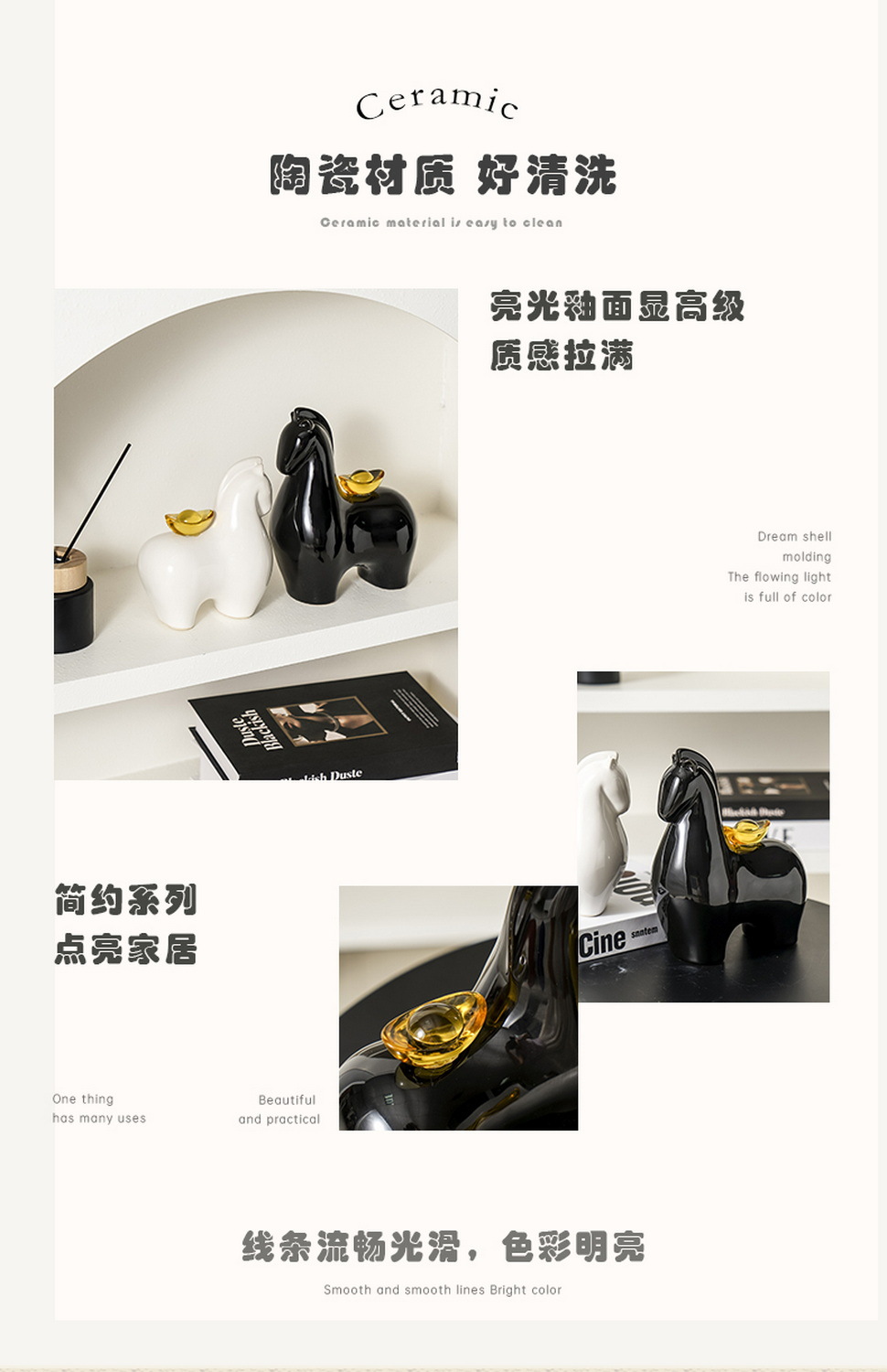 즉각적인 부자감을 주는 창의적인 도자기 장식품, 고급스러운 틈새시장, 현관, 거실, 사무실, TV장식장 장식품