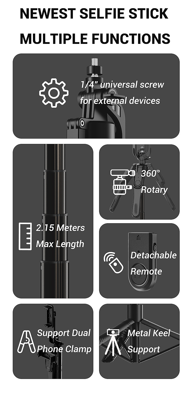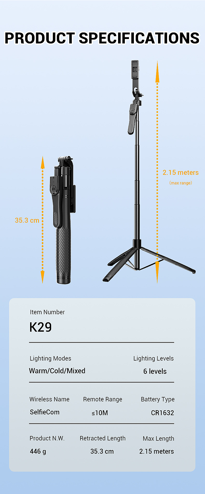24년 신형 K29 메탈 셀카봉 2.5m 삼각대 폰 라이브 방송 스탠드 방진 블루투스 세로 촬영