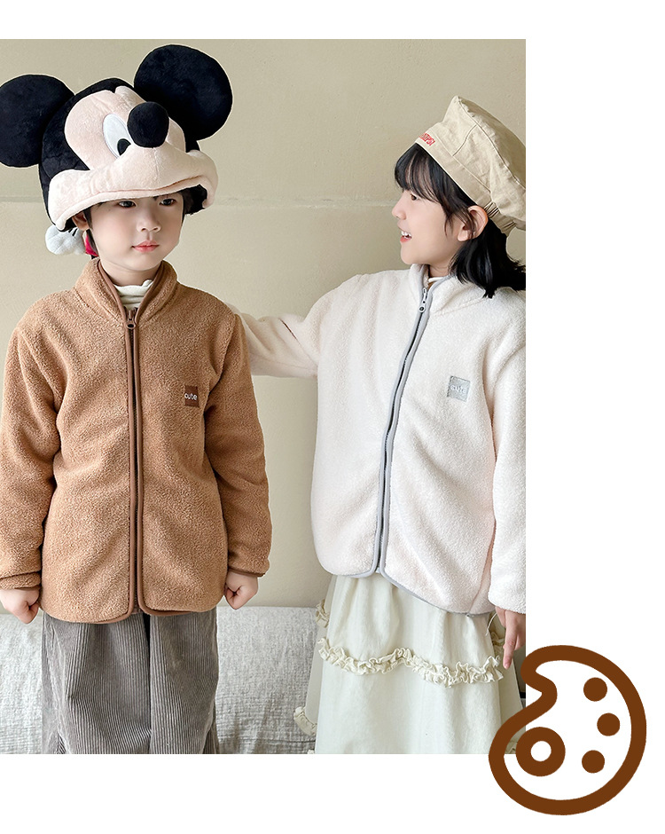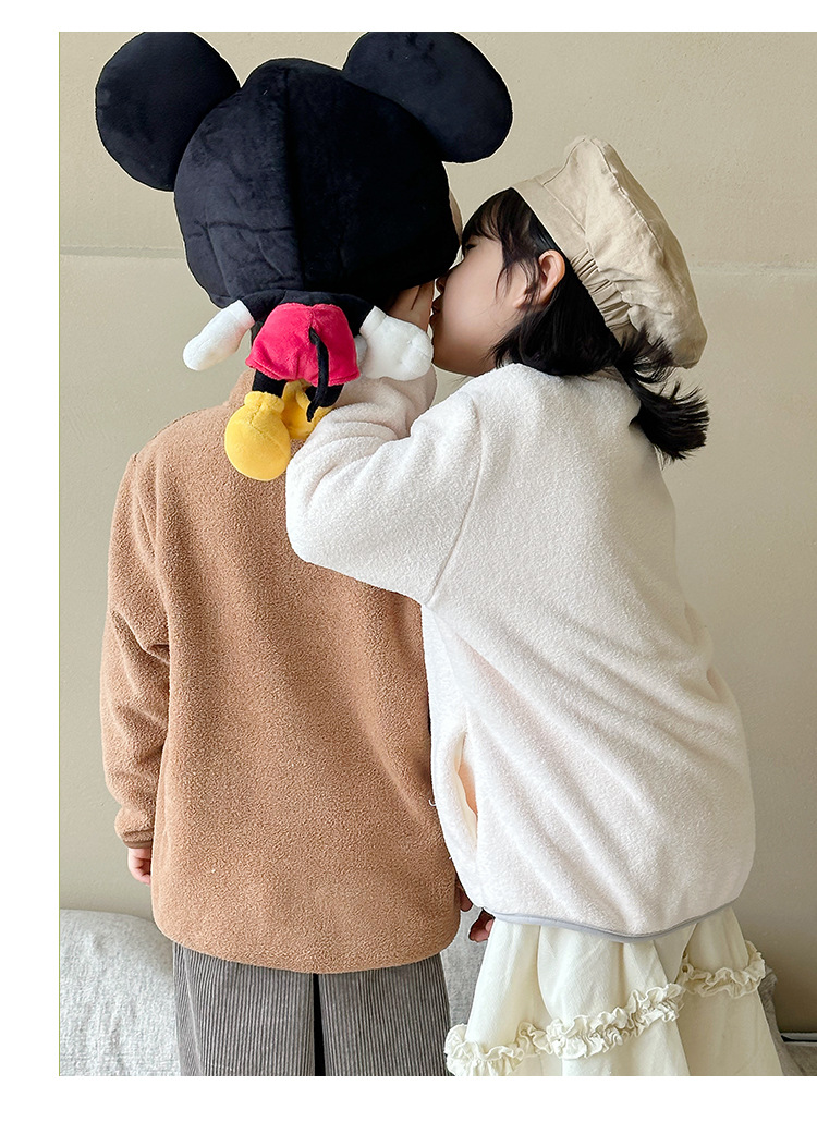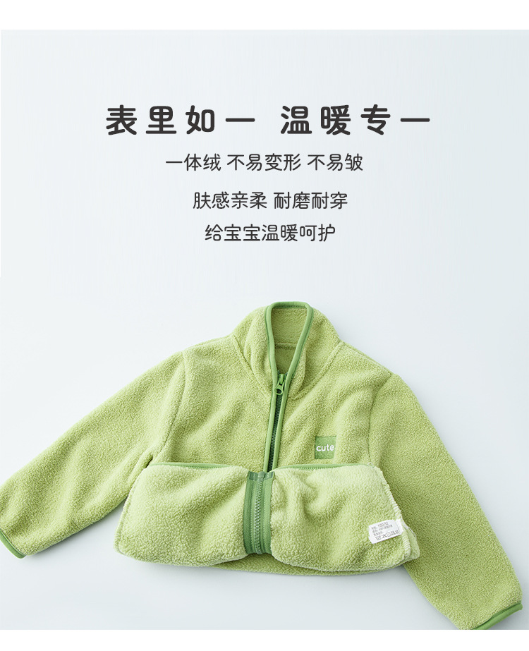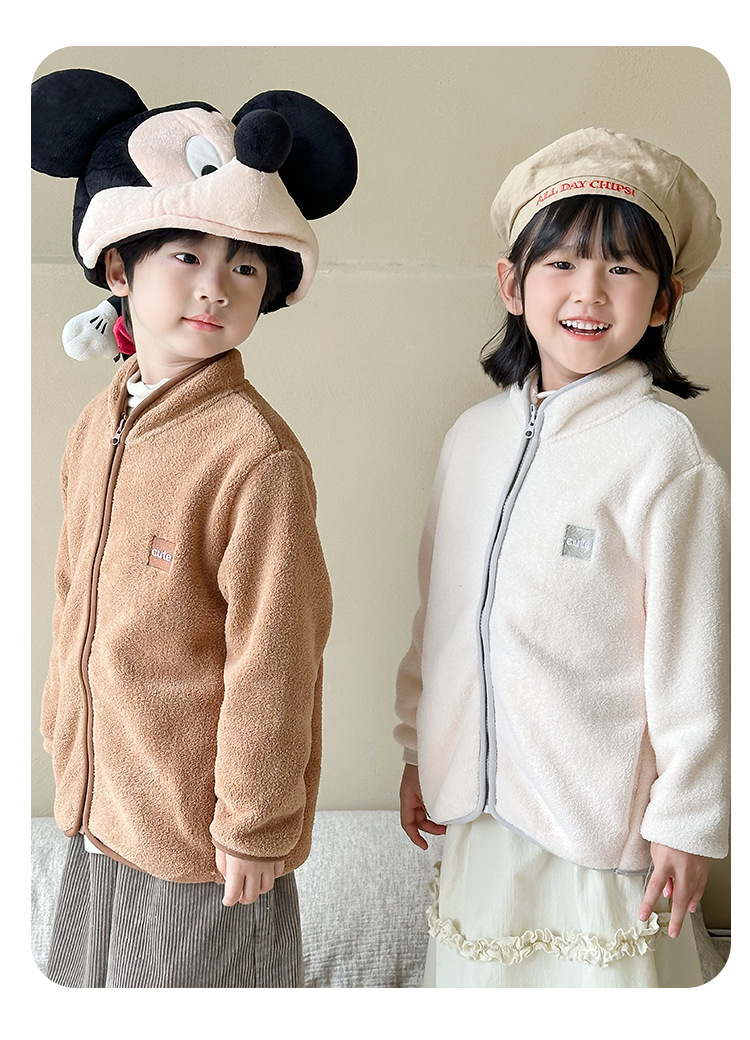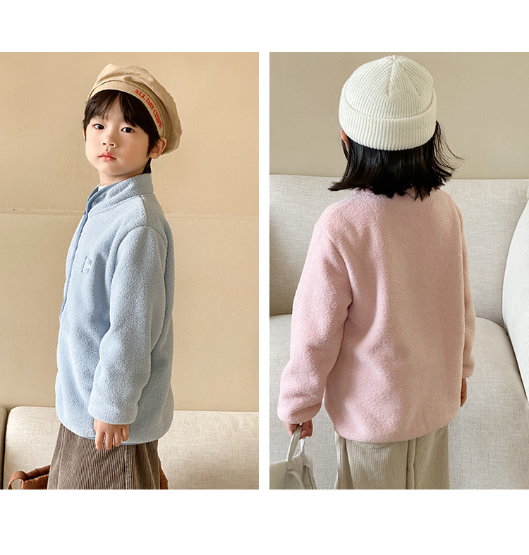 가을과 겨울 새로운 아동복 2024 소년 소녀를위한 곡물 벨벳 코트 3-12 세 캐주얼 따뜻한 카디건 스탠드 칼라 코트