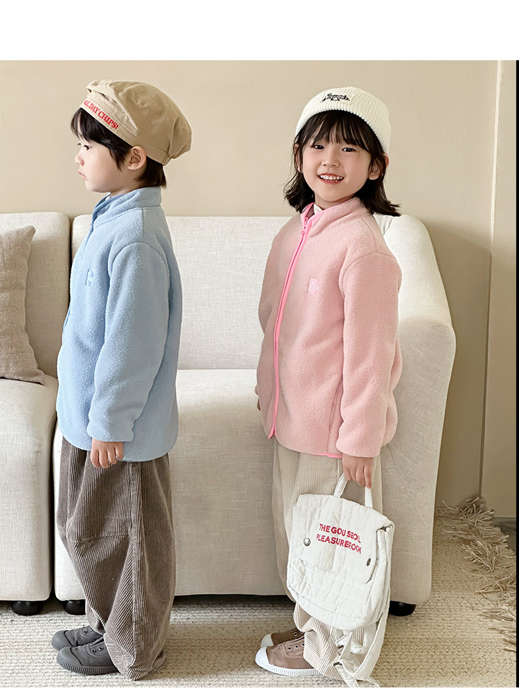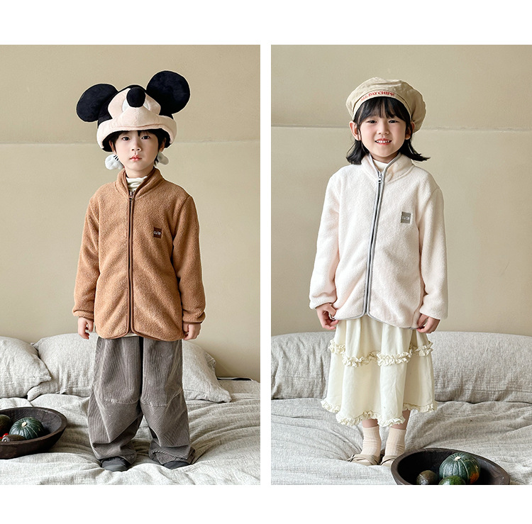 가을과 겨울 새로운 아동복 2024 소년 소녀를위한 곡물 벨벳 코트 3-12 세 캐주얼 따뜻한 카디건 스탠드 칼라 코트스토어 가기